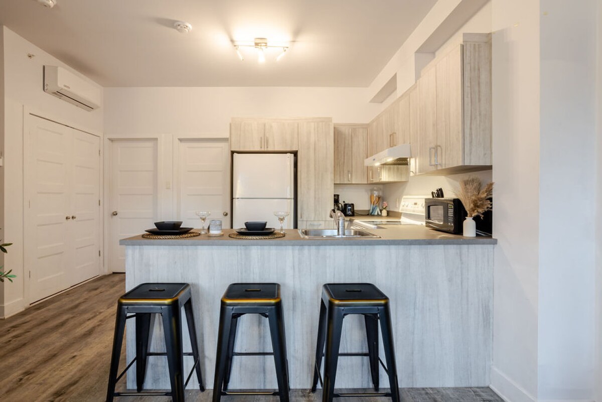 Velkomin í bjarta og notalega íbúð með einu svefnherbergi í hjarta miðborgar Montreal. Fullkomið fyrir allt að fjóra gesti. Þar er rúm í queen-stærð, svefnsófi og eitt baðherbergi. Njóttu fullbúins eldhúss, þægilegrar stofu og hröðs þráðlaus nets. Þetta er fullkominn staður til að skoða Montreal í þægindum og stíl, í göngufæri frá vinsælum veitingastöðum, verslunum og kennileitum borgarinnar.