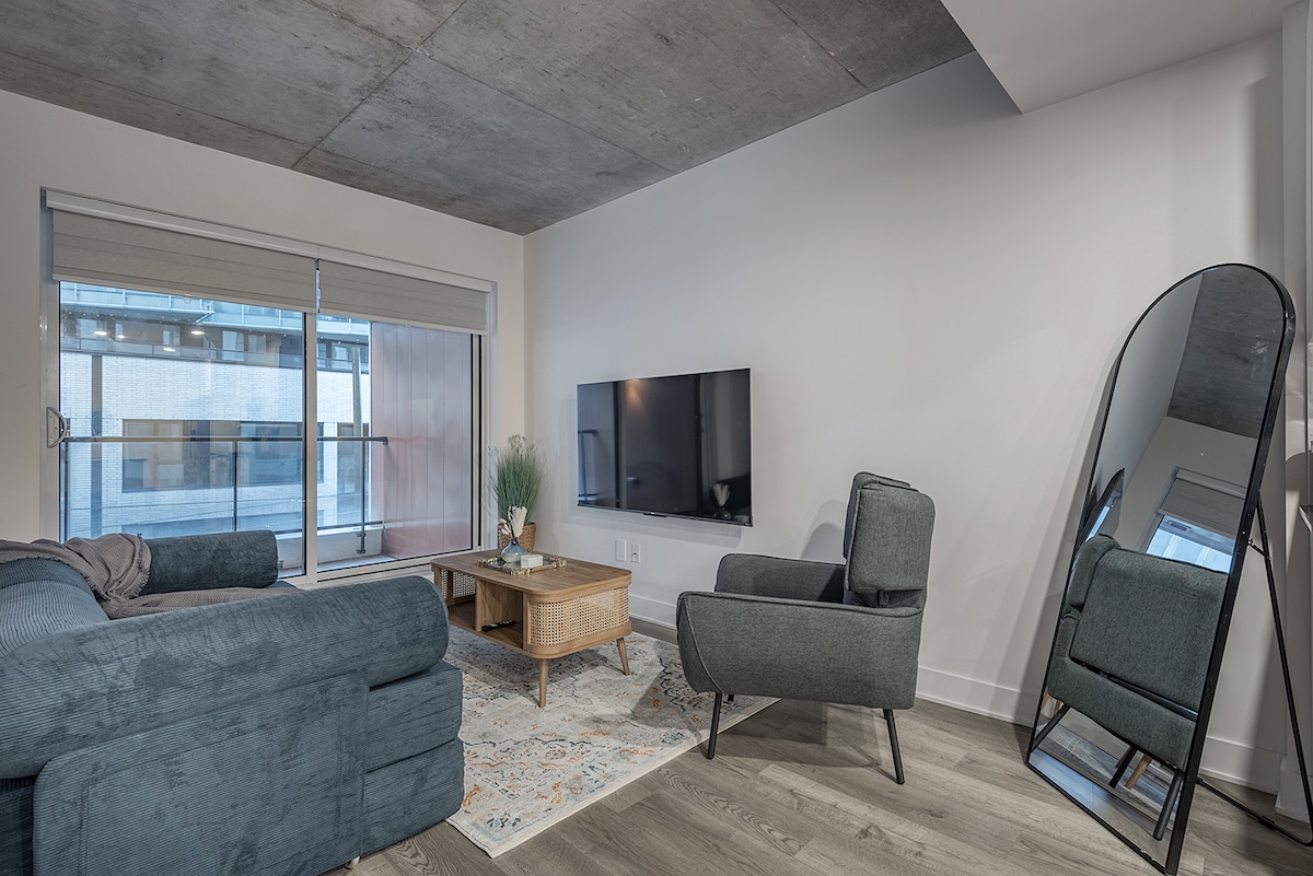 Experience refined urban comfort in the heart of Montréal’s Golden Square Mile, one of the city’s most prestigious and walkable neighborhoods. This modern 1-bedroom suite comfortably accommodates up to 6 guests with a queen bed and two sofa beds, perfect for couples, families, or business travelers seeking style and convenience.