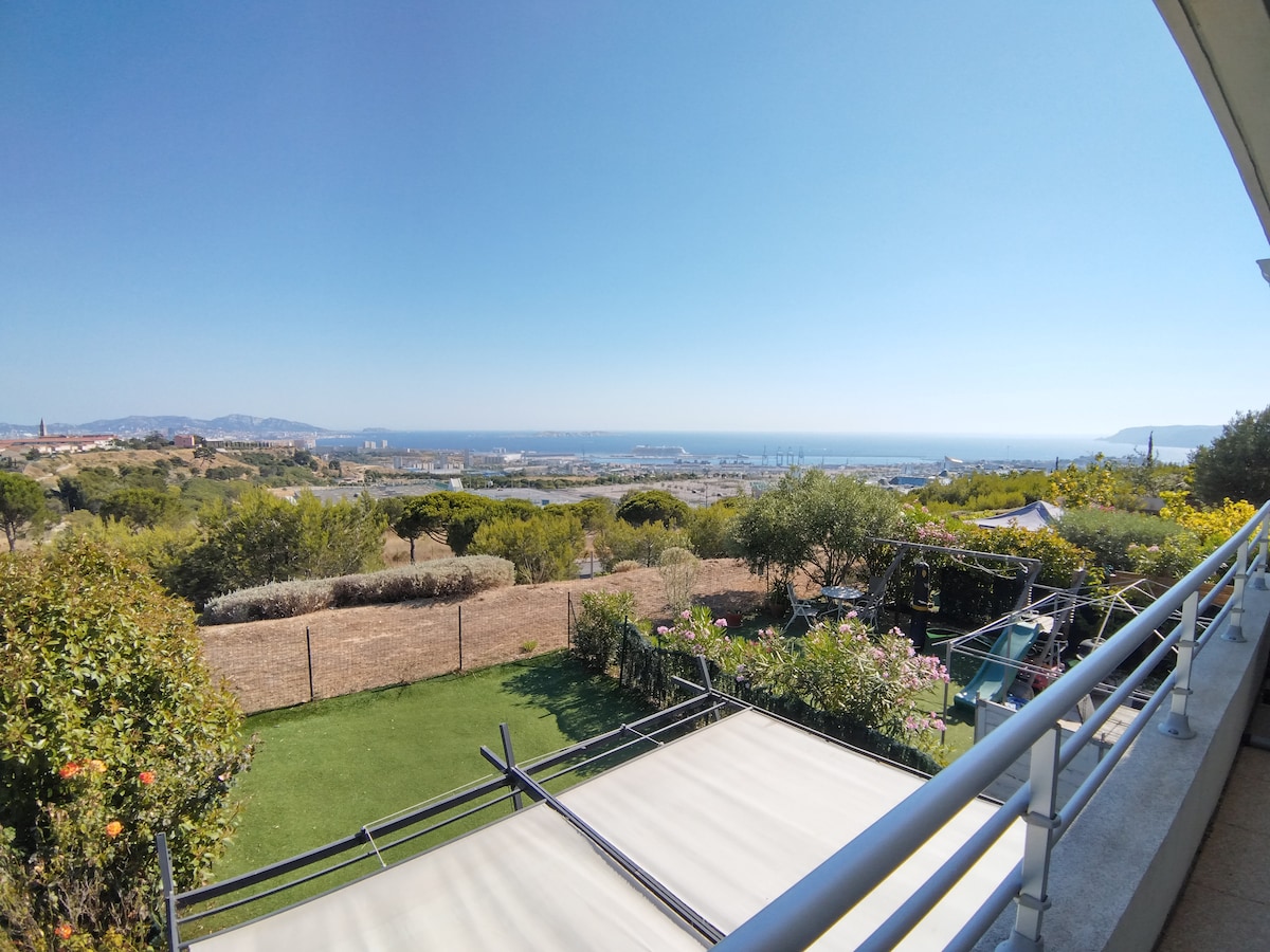 Hús uppi á kletti! Sjálfstætt, rólegt, rólegt, með sólríkum garði (suður og austur). Þaðan sérðu hluta Marseille og Velodrome-leikvanginn! Nágranni við gestgjafann þinn, sem er staðsettur við hliðina á Notre Dame de la Garde, 5 mín akstur að strönd trúboðsmannsins og nálægt öllum verslunum. Fyrir framan húsið er strætóstoppistöð (49) sem býður upp á gömlu höfnina. Athygli er aðgangur að gistiaðstöðunni 45 þrep. Þrif eru innifalin í verði og rúmföt og handklæði eru til staðar.