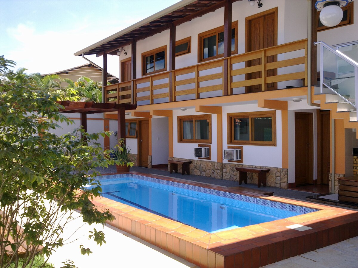 Fullbúið gestahús, sjálfstætt, með loftræstingu, grill og bílskúr Gæludýr eru ekki leyfð! 200 metra frá Jabaquara-strönd, einu besta hverfi í Paraty: 15 mínútur (göngufæri) frá miðbænum, með ró og öryggi íbúðarhverfis Markaðir, veitingastaðir, söluturnar, allt er í kringum! Göngufæri: Ströndin: 5 mín. | Sögulegur miðbær: 15 mín. | Strætisvagnastöð: 30 mín. Vinsamlegast fjarlægðu ruslið og haltu umhverfinu hreinu og vel skipulögðu meðan á dvölinni stendur frá því að þú kemur á staðinn!