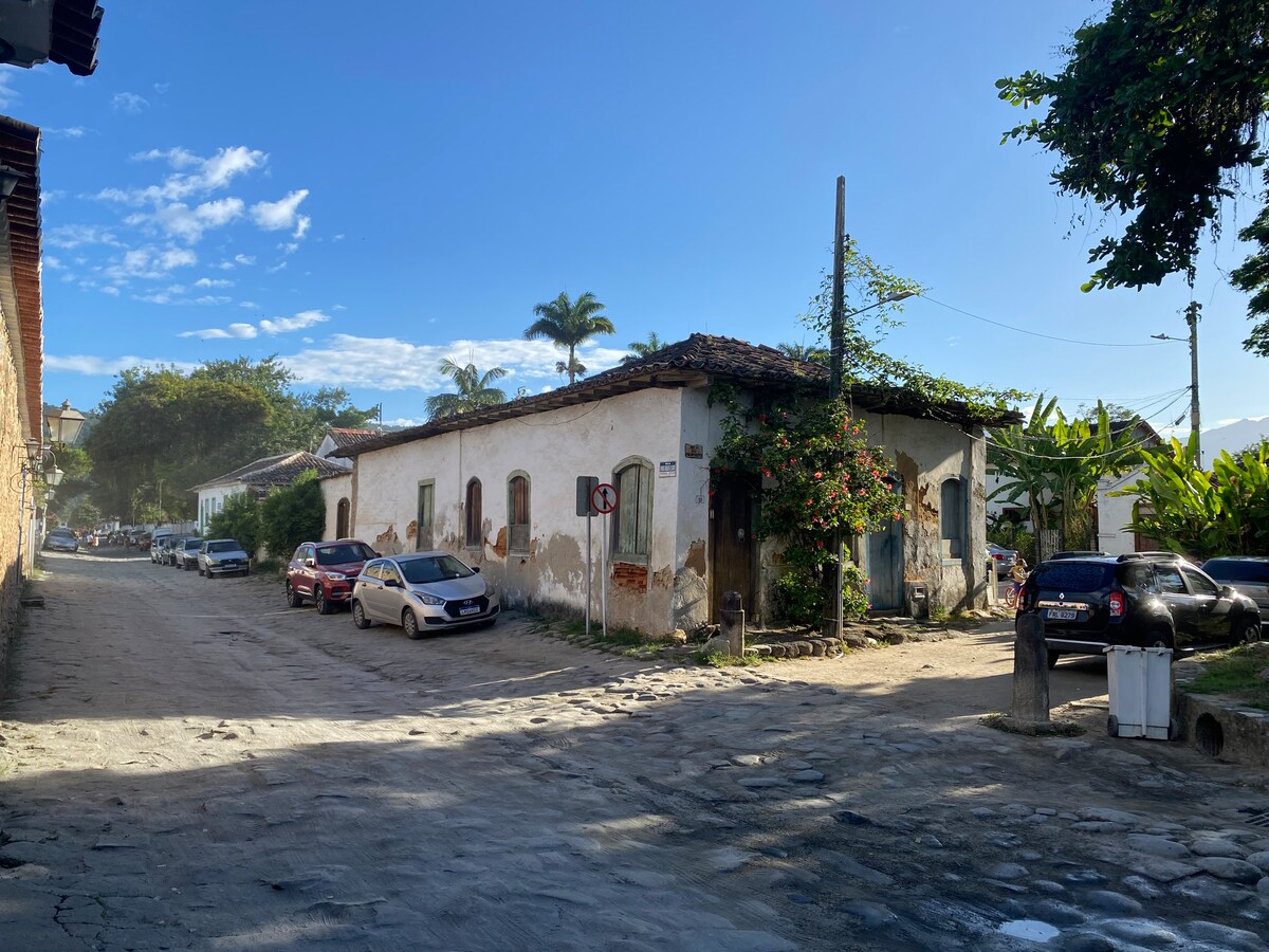 Hús fullt af listum staðsett í hjarta sögulega miðbæjarins í Paraty-RJ, tilvalið af pari sem hefur brennandi áhuga á brasilískri menningu og listum okkar. Húsnæðið, sem er fullkomið fyrir par, er á fyrstu hæð í sögufrægu raðhúsi, við aðalgötuna og borgarblokkina. Hjónin sjálf gerðu villuna nýlega upp með forsendu virðingar fyrir sögu þeirra, ófullkomleika handgerðrar byggingar forfeðra, sem tengjast nútímalegu og þægilegu lífi.