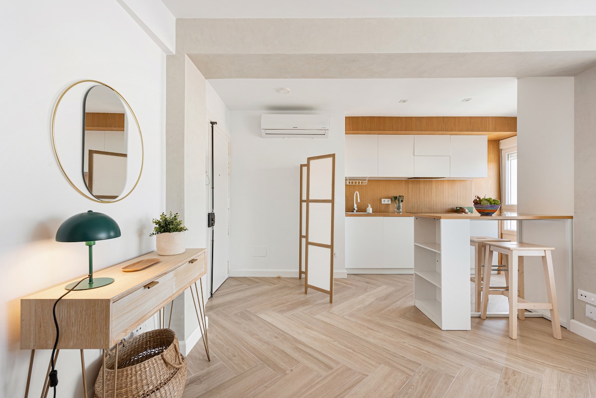 Uppgötvaðu notalegu íbúðina okkar í hjarta Malaga, í göngufæri frá iðandi miðborginni. Með tveimur svefnherbergjum er hún tilvalin fyrir fjölskyldur, vini eða hópa sem vilja kynnast ríkri menningu borgarinnar og líflegu næturlífi. Njóttu bjartrar og nútímalegrar eignar með fullbúnu eldhúsi, þráðlausu neti og loftkælingu. Slakaðu á eftir dag í skoðunarferðum og nýttu þér úrval verslana og veitingastaða í nágrenninu. Komdu og upplifðu ekta Malaga!