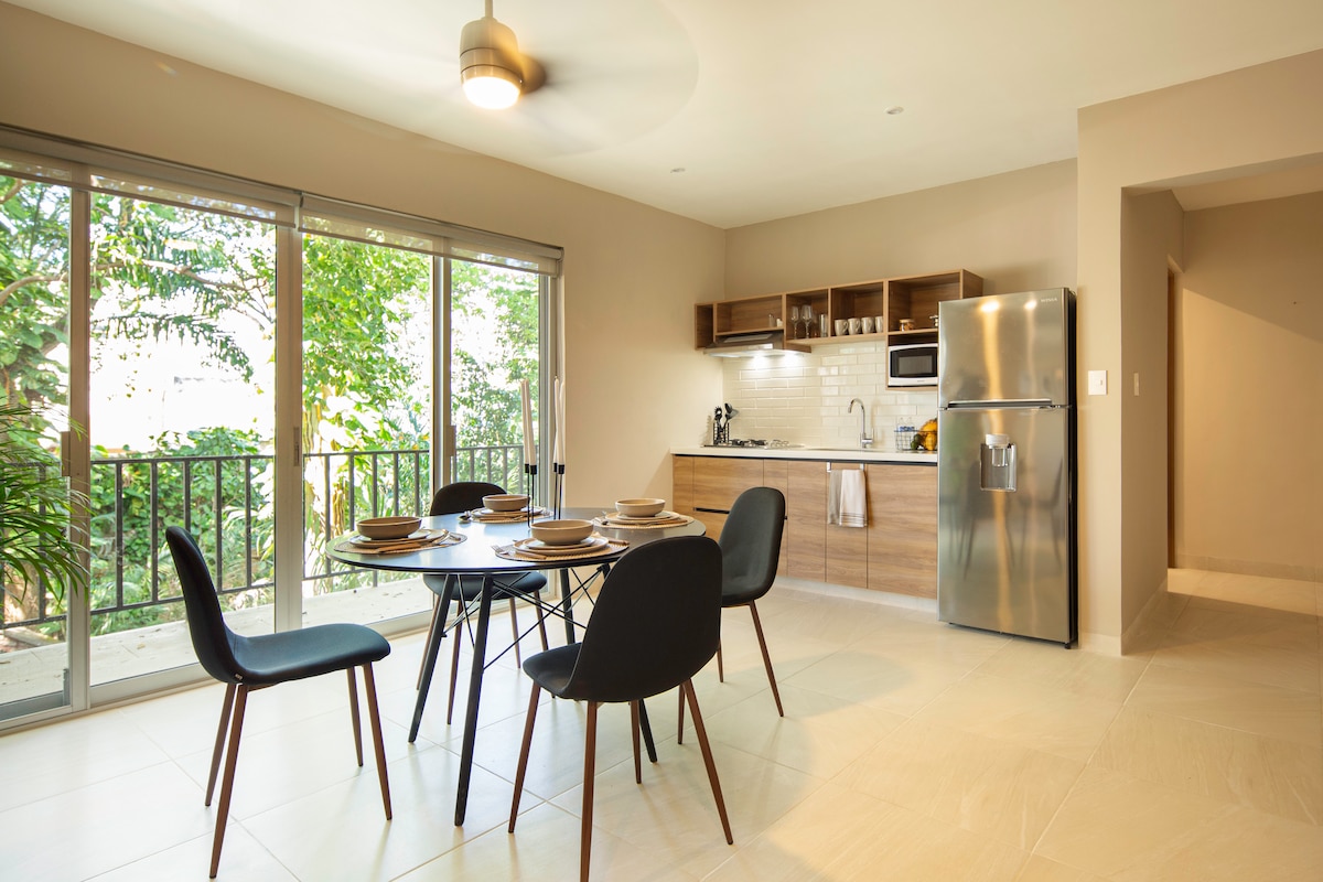 Discover our modern smart one-bedroom apartment, ideal for 2 guests and up to 4. It features a fully equipped kitchen, 1.5 bathrooms, living and dining area. Just say “OK Google” to control the TVs, fan, air conditioning and music. Located in Bosqüa, a private complex near downtown Mérida with easy access to Puerto Progreso. Perfect for remote work. Self check-in from 3 pm and 24/7 security for your peace of mind.