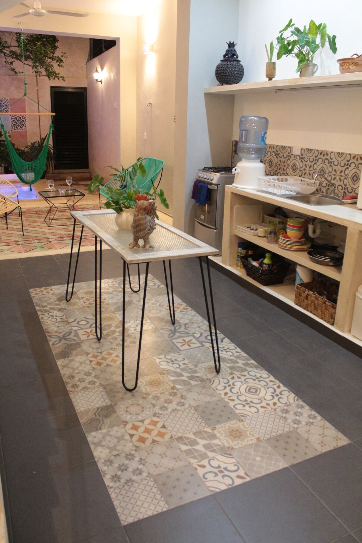 Nágrannar okkar eru að byggja og það gæti verið hávaði frá kl. 8:00 til 17:00. Ryk getur komist inn í húsið og herbergin Nýuppgert hús, það viðheldur hefðbundnum nýlendustíl með mikilli lofthæð og bogum en með nútímalegu ívafi. Þeir munu geta notið laugarinnar á daginn til að hvílast og fá sér drykk. Staðsett á besta svæðinu; rólegri íbúðargötu en í 5 mínútna göngufjarlægð frá Plaza Santa Ana, Paseo Montejo og mörgum listasöfnum, veitingastöðum og verslunum