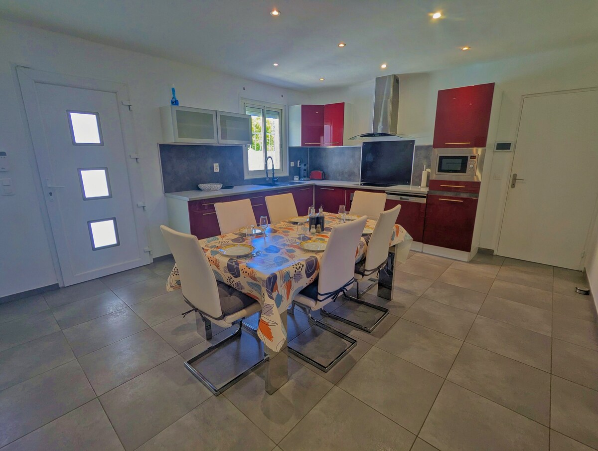 T2 þægilegt, (búið til á jarðhæð húss með sjálfstæðu aðgengi) sem samanstendur af: - Stofa/stofa með opnu eldhúsi (ofni, helluborði, örbylgjuofni o.s.frv.), svefnsófa fyrir 2, sjónvarpi, sturtuklefa og aðskildu salerni - 1 svefnherbergi á millihæð með hjónarúmi -WIFI: Trefjar og afturkræf LOFTKÆLING Eign staðsett í hæðum þorpsins á rólegu svæði, í um 15 mínútna göngufjarlægð frá miðborg Cerbère þar sem finna má nokkrar verslanir og strendur.