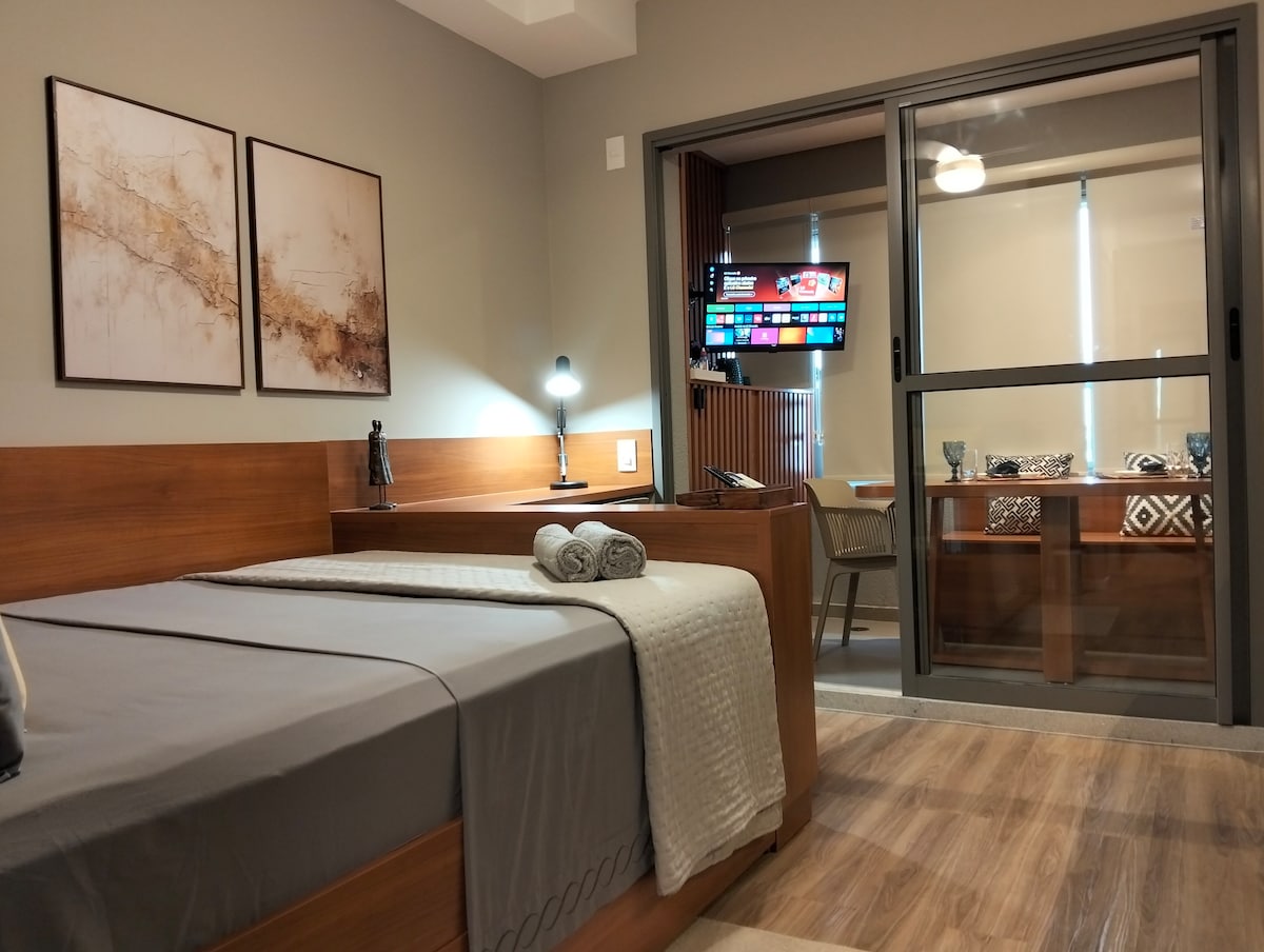 20 skrefum frá Carrão neðanjarðarlestinni, njóttu einstakra og sérstakra stunda í notalegu, hljóðlátu og fáguðu rými með gallalausum þrifum og fullkomnu rými með queen-rúmi og þægilegum tvöföldum svefnsófa. Staðsett í Tatuapé með mikla innviði viðskipta og þjónustu ásamt tómstundum og auðveldum ferðalögum til annarra svæða í borginni. Hverfið er þekkt fyrir að einbeita sér að góðum hluta veitingastaða, kaffihúsa og ísbúða frá hæstu matargerðarlistinni.