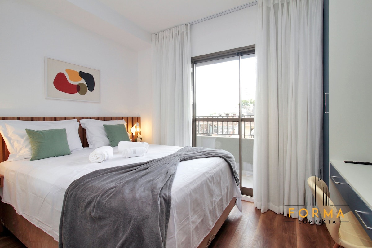 Nútímaleg íbúð (nýopnuð) á 1. hæð, loftkæling, einkasvíta og öryggisgæsla allan sólarhringinn. Hér er nútímaleg og hagnýt hönnun með 40m², 100% húsgögnum og skreytt með hágæðavörum og öllum nauðsynlegum áhöldum fyrir langtímagistingu og skammtímagistingu (allt að 4 manns). Frábær staðsetning í Jardim Anália Franco-hverfinu með greiðan aðgang að almenningsgörðum, veitingastöðum og almenningssamgöngum. 3 mínútur frá Shopping Anália Franco, 23 mínútur frá Guarulhos flugvelli.