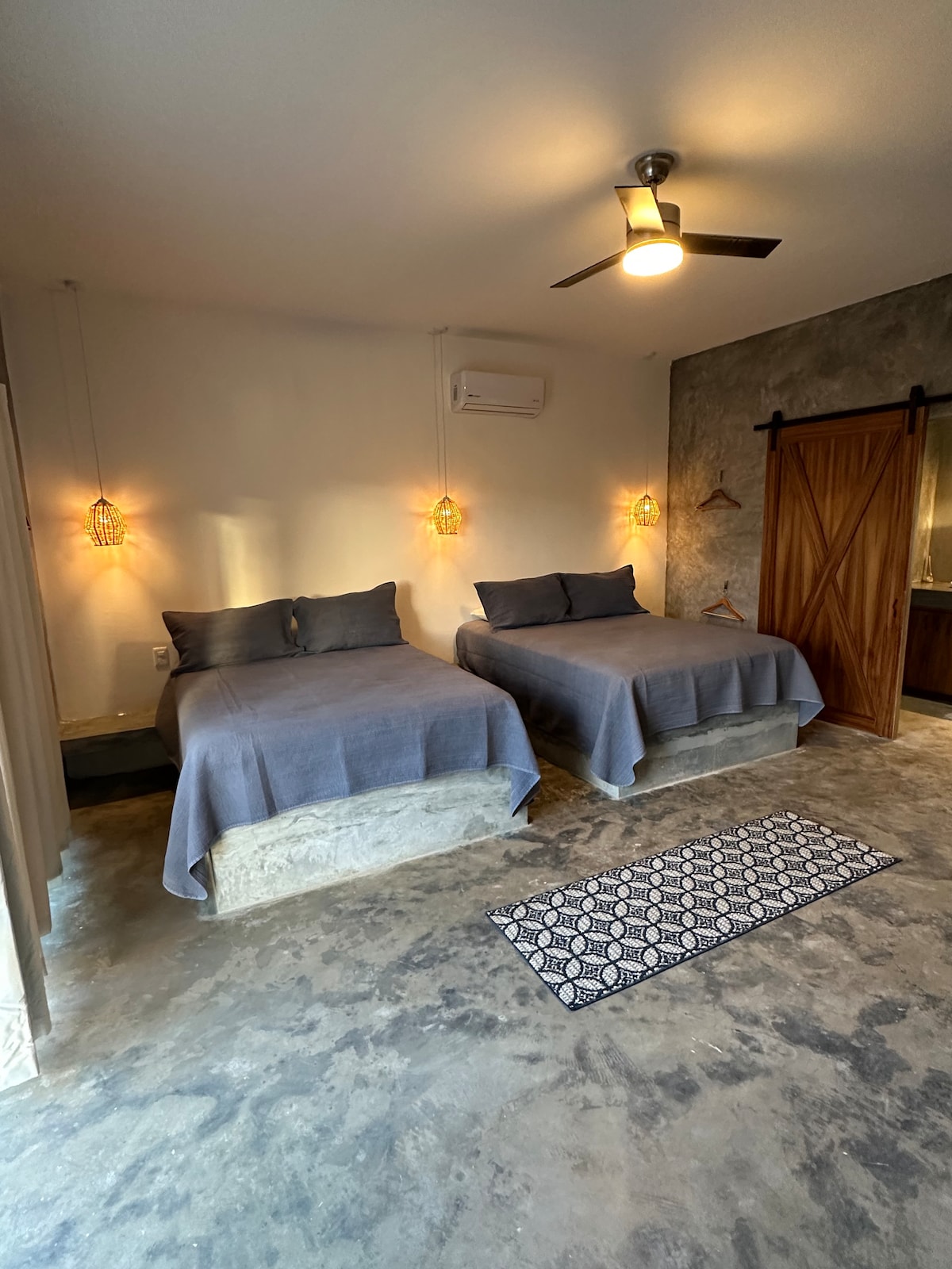 It doesn´t get any closer to Playa Los Cerritos! Our condo is a spacious suite with a beachfront terrace to check out the surf or enjoy one of the most beautiful sunset in Baja. The space has everything you need to live on the beach: - A master bedroom and two bathrooms. - One King size bed for your comfort. - A couch in the living room for the little one or the thrifty friend that you love. - A Kitchen to prepare the catch of the day. There are also 2ACs (in the living room and the bedroom)