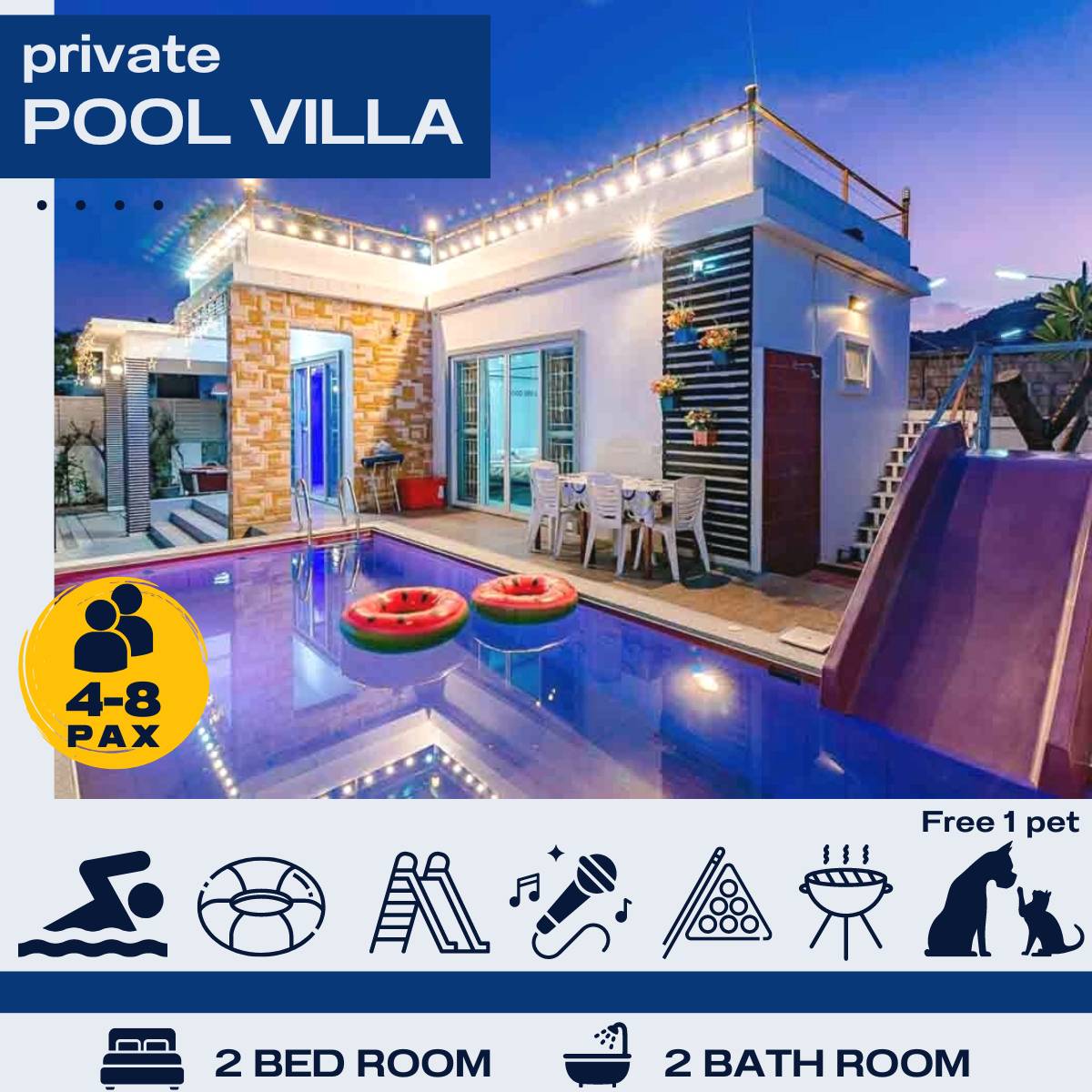 Húsið með einkasundlaug er fullkomið fyrir hópferð. Hvort sem um er að ræða vinahóp eða fjölskyldu sem þú elskar getur þú tekið á móti 12-15 viðskiptavinum. Hún er fullbúin tækjum, þar á meðal eldhúsi og eldhúsbúnaði, sem og grilli. Einnig er boðið upp á karaókí-hljómtæki með eldtækni fyrir einkasamkvæmi. Ókeypis þráðlaust net er einnig í boði. Og mikilvægast af öllu er að það er ekki langt frá matvöruversluninni. Það tekur aðeins 5 mínútur og nálægt Plearnwan. Það tekur aðeins 15 mínútur að komast á næturmarkaðinn en það tekur aðeins 20 mínútur.