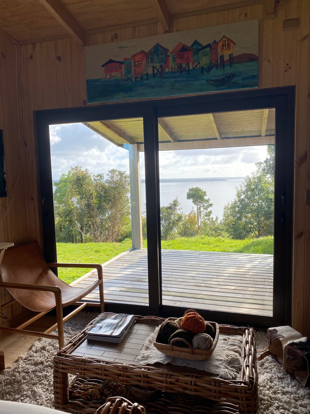 Fallegur kofi í Chiloé, með útsýni yfir hafið.