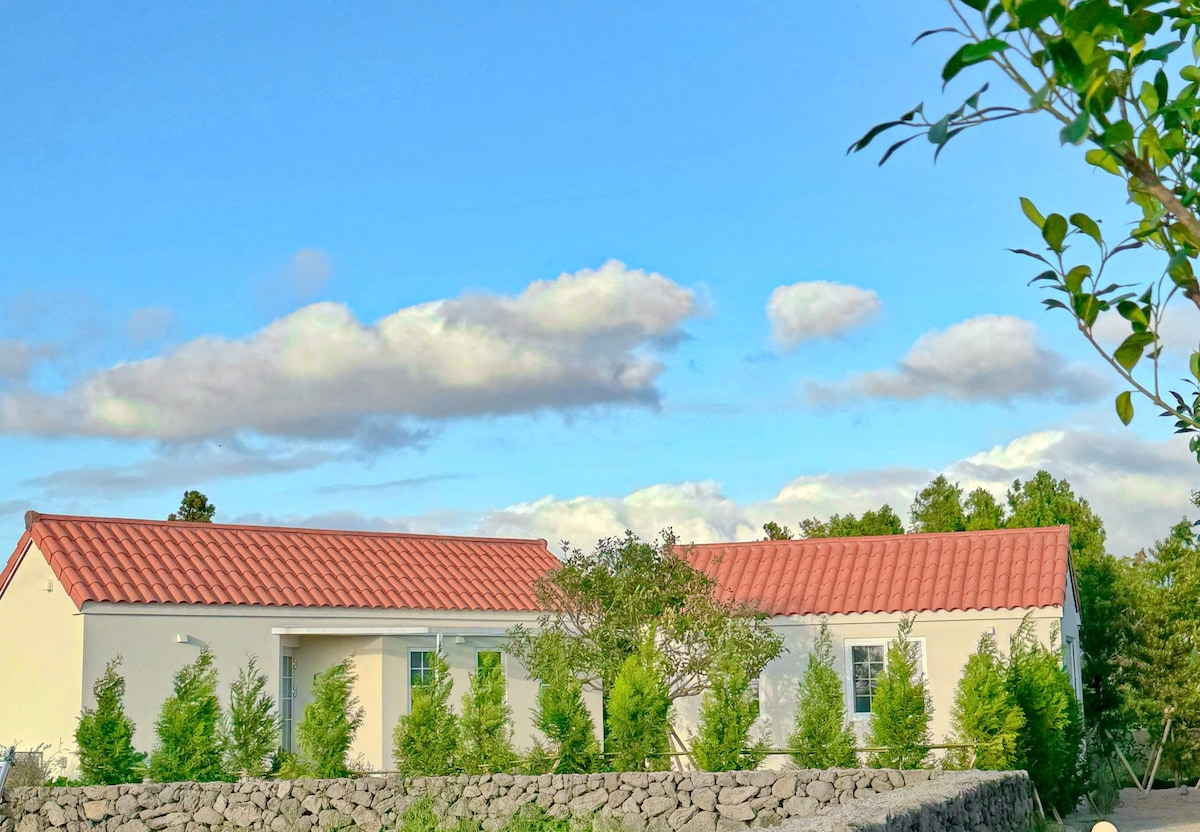 Þetta JEJU_I pension er staðsett í rólegu þorpi sem er þekkt fyrir falleg sólsetur og vindmyllur. Parið okkar býr á fyrstu hæðinni og við höfum útbúið aðra og þriðju hæðina eingöngu fyrir gestina okkar. Í heildina eru 2 herbergi og 1 fjölskylduherbergi og þægilegt er að nota garðinn og þakið! Skrepptu frá miðbænum og láttu þér batna í sveitaþorpi þar sem þú getur upplifað Jeju.
