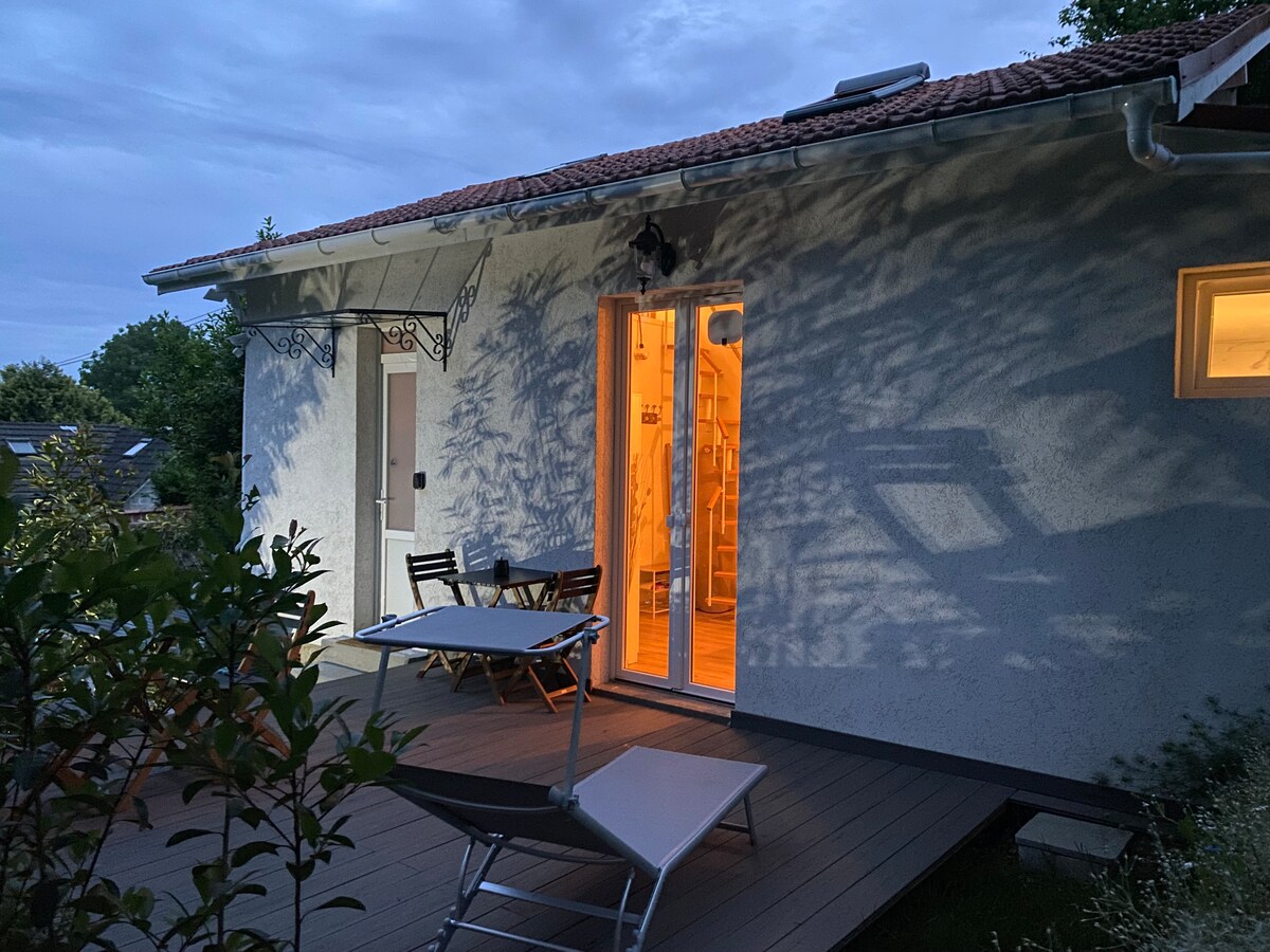 Mjög notalegt, nýlega uppgert einbýlishús neðst í garðinum, hljóðlátt, 60 fermetrar. Njóttu góðs af sérinngangi og bílastæði og þaki sem þakið er grasi. Í 5 mínútna göngufjarlægð frá lestarstöðinni sem tekur þig á 30 mín fresti að miðborg Parísar eða í Disneyland á 20 mín. Göngufæri frá miðbænum og verslunum hans. Nálægt Lagny og bændamarkaði (þrisvar í viku og á sunnudegi) og mörgum verslunum. Garðurinn er stór og sameiginlegur með okkar eigin húsi.