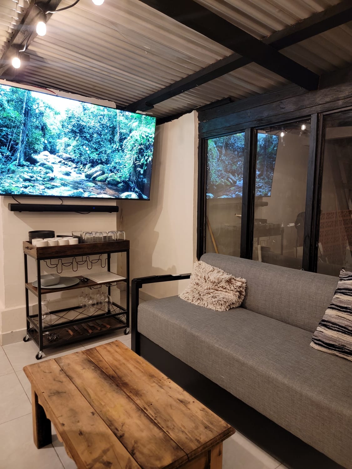 Lítið leshús í El Cerrillo, elsta barrio í San Cristóbal, í 10 mínútna göngufjarlægð frá miðbænum, veröndinni og garðinum. Rúm í king-stærð með rúmteppum, trégólfi í svefnherberginu, fullbúnu eldhúsi, arni og aukagashitara. Innifalið er vikulegt ræstingagjald og viðbótarþrif í boði. Annað, stórt, sameiginlegt rými í garðinum með sameiginlegri þvottavél og þurrkara