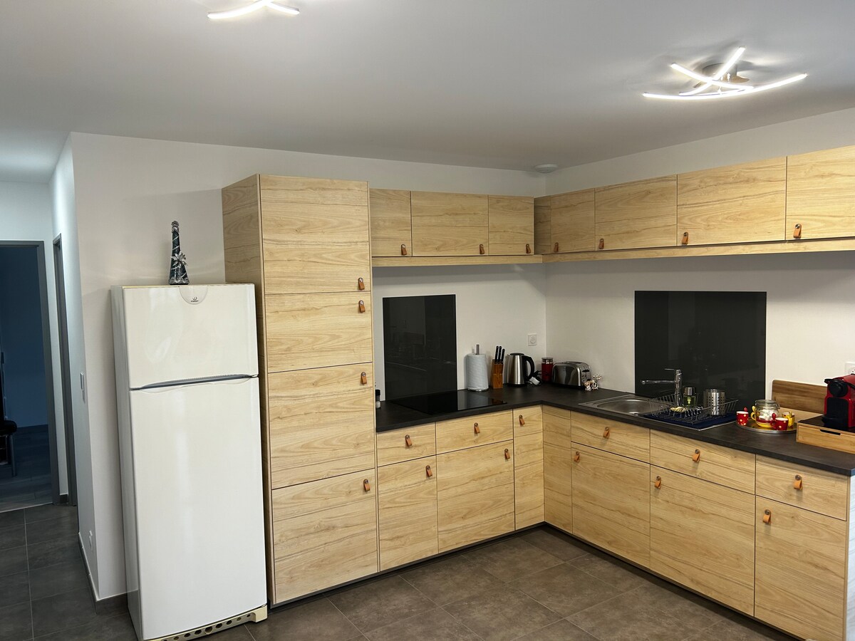 Verið velkomin í heillandi, notalega íbúð okkar í Cournon d 'Auvergne! Staðsett í 5 mínútna fjarlægð frá Zenith í Cournon d'Auvergne. Njóttu afslappandi dvalar með bílastæði í nágrenninu og greiðum aðgangi að almenningssamgöngum. Vandlega útbúið rými okkar býður þér upp á öll þægindin sem þú þarft með lúxusupplifun með einkaheilsulind og stórri sturtuinnréttingu. Njóttu 200 cm flatskjás fyrir yfirgripsmikla kvikmyndaþjónustu