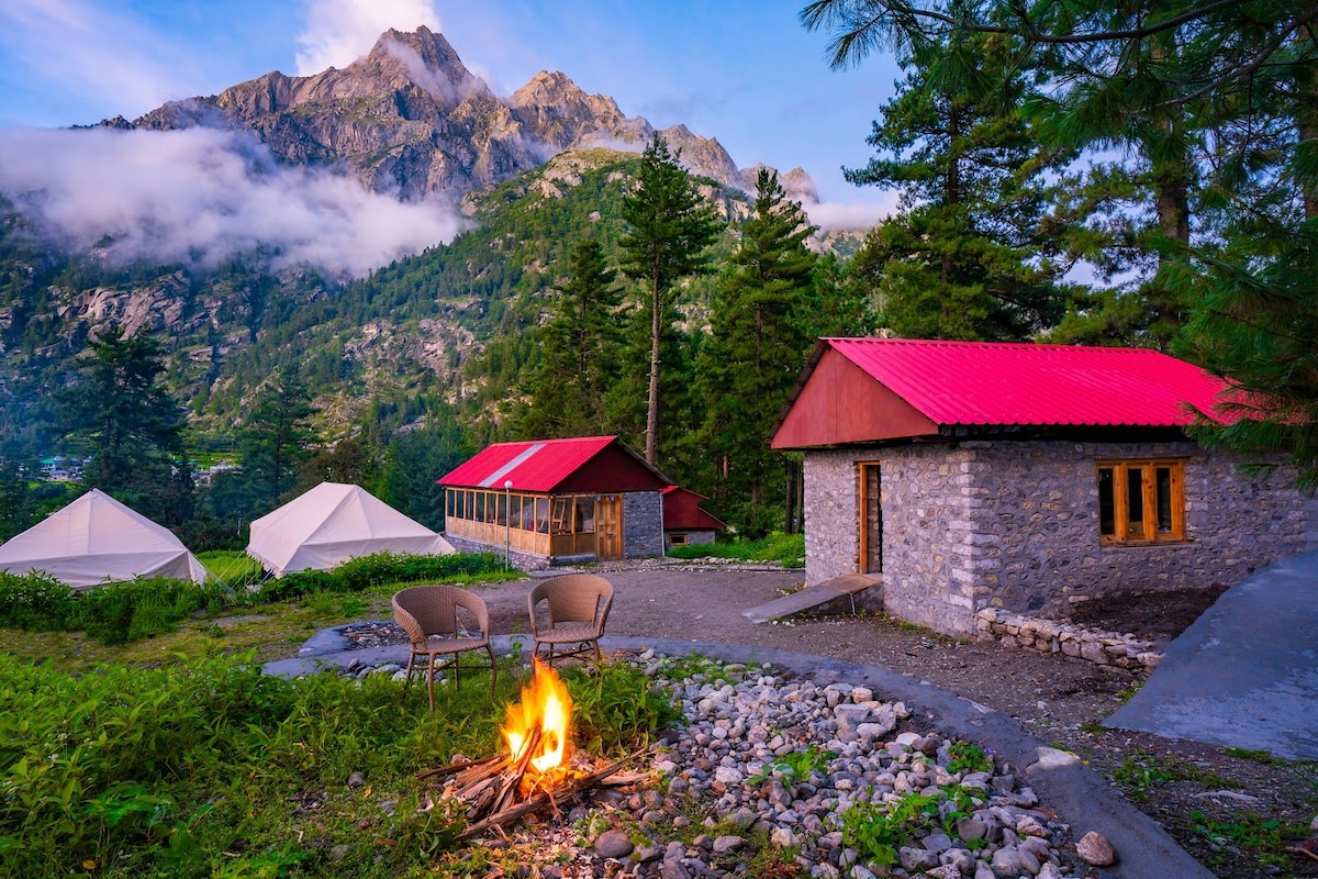 Experience the Himalayas in spacious Swiss camps, ideal for families and trekkers. Enjoy breathtaking views of snow-capped peaks and the Baspa River. Guests love the warm hospitality, delicious homemade meals, and guided treks through scenic meadows and pine forests. Evenings by the bonfire under starry skies add a magical touch. A perfect escape to relax, reconnect, and enjoy nature at its best.