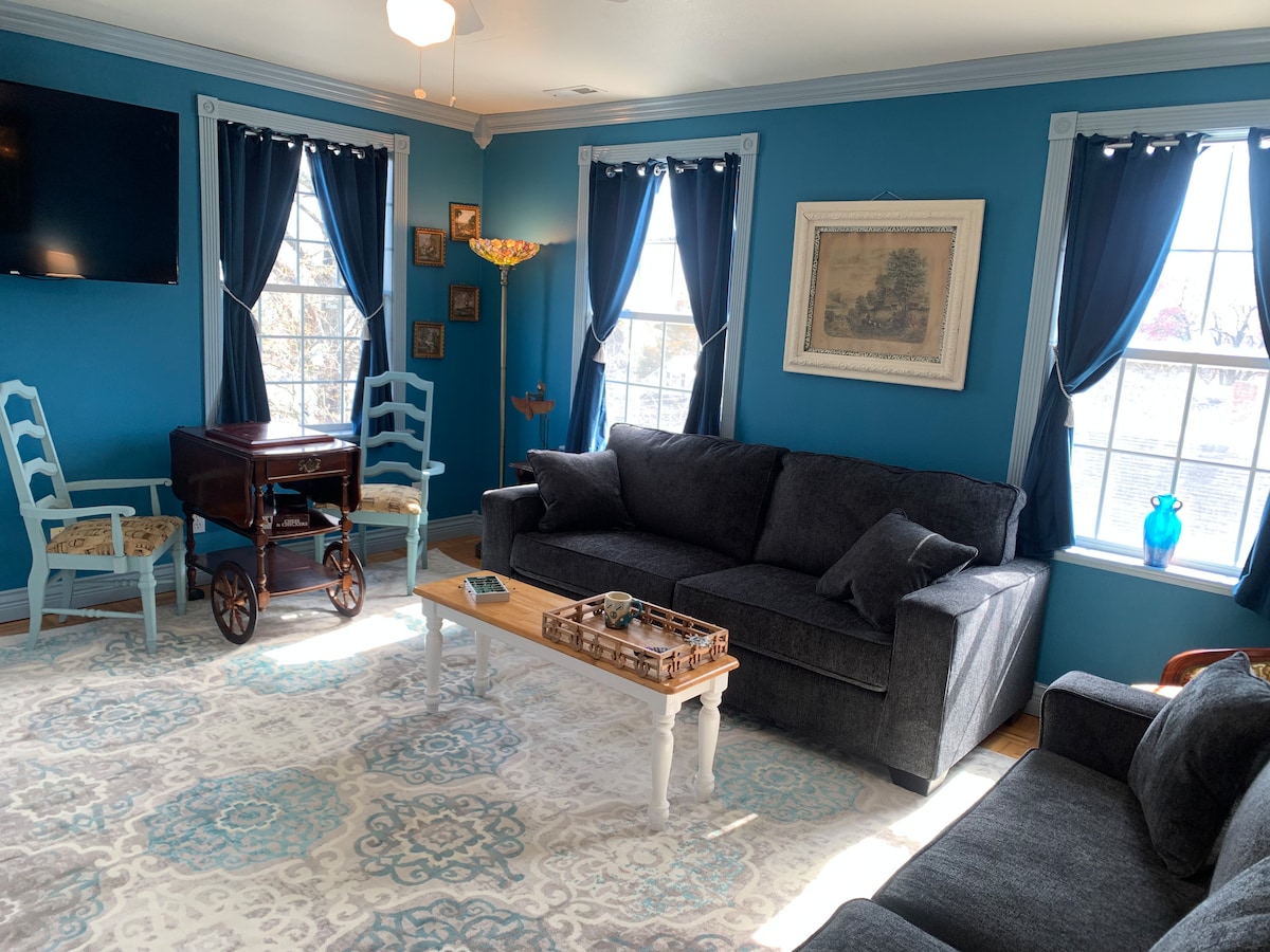 Rose Manor, áður The New Willard Hotel í meira en 40 ár, byggt 1892. Nú getur þú leigt efstu hæðina í sögulega Manor, herbergi 6-10 fullbúið eldhús. Algjörlega endurnýjað í einkaheimili. Tveimur stórum veröndum hefur verið bætt við fyrir stórkostlegt útsýni yfir sólarupprás og sólsetur á meðan þú hlustar á öldurnar. Við erum 2 húsaraðir frá miðbænum og strönd. Colonial Beach er yndislegur lítill bær, tekur þig aftur í tímann með staðbundnum sjarma, viðburðum, fuglaskoðun og lifandi tónlist. Komdu í golfkerru um bæinn eins og heimamaður.