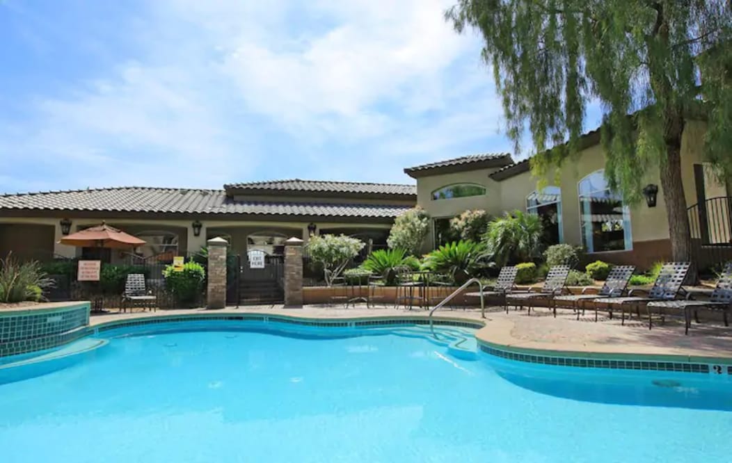 Forget your worries in this spacious and serene space. located in the 1st Floor in Building 24. Resort Style Living with Mature Landscaping minutes to the Las Vegas Strip, T-Mobile Arena, Allegiant Stadium and International Airport! With Two Pools and Spas, Fitness Center , Community provides On Site Security and multiple Barbeque areas! GREAT for long term stay.