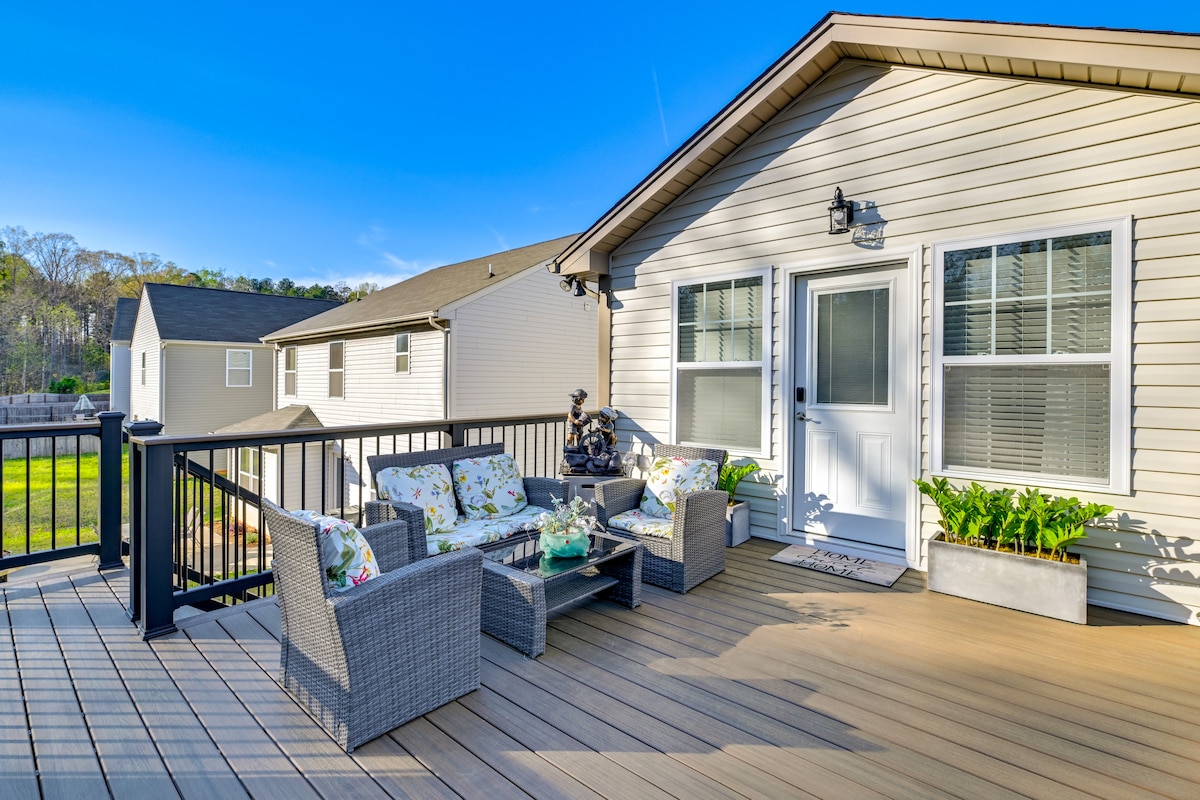 Fully Stocked Kitchenette | Oversized Deck w/ Seating | 4 Mi to Cabarrus Arena Tucked into a tree-lined corner of Concord, 'Arabella Studio' feels like a deep breath you didn't know you needed. From the refined comfort of the California king suite to the patio's peaceful setting, every inch of this vacation rental was designed with one goal — real rest. When you're ready to venture out, head downtown for local bites or spend a day at the races. When you're not? The fireplace is waiting!