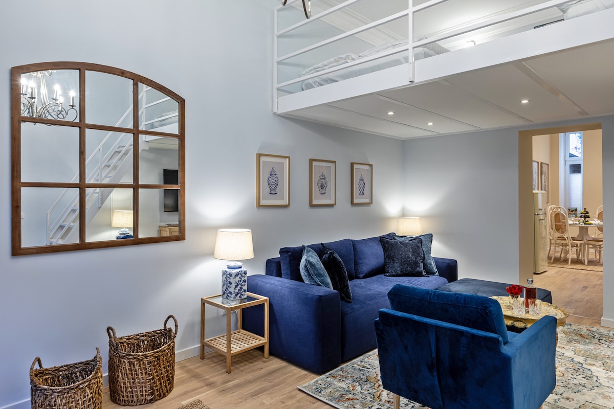 Velkomin í þessa rúmgóðu og glæsilegu einkasvítu í sögulegu hjarta Berlínar, í stuttri göngufjarlægð frá helstu kennileitum borgarinnar, framúrskarandi veitingastöðum og líflegum verslunarsvæðum. Njóttu algjörs næðis, friðsæll garðútsýni, rólegs svefns og fágaðrar nútímalegra þæginda. Gluggar frá gólfi til lofts fylla rýmið náttúrulegu birtu og svefnherbergi með rúmi í king-stærð, fínlegt eldhús og glæsilegt baðherbergi með regnsturtu og baðkeri skapa rólegt athvarf í miðborginni.