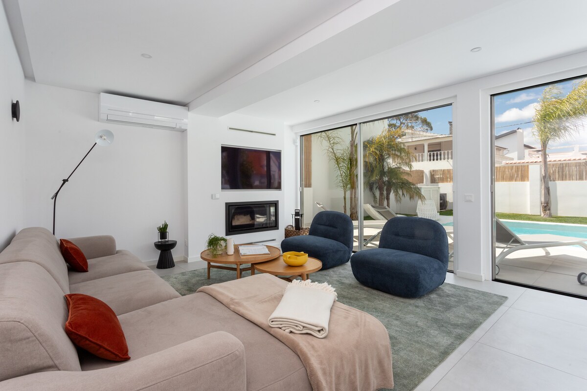Sólríkt hús með sundlaug, 5 mín. frá ströndinni, 15 mín. frá Lissabon
