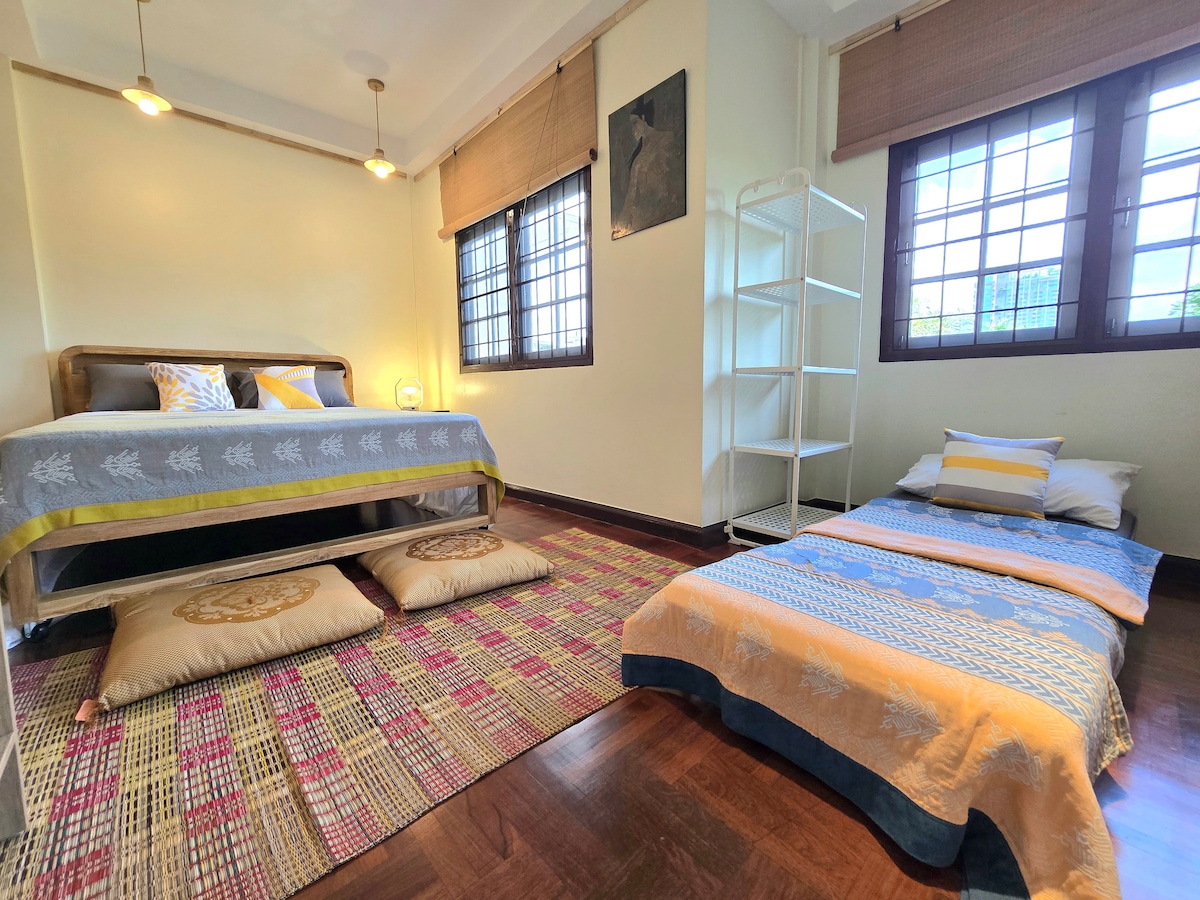 Njóttu dvalarinnar í miðborg Bangkok á þessum notalega og glæsilega stað. 160 fm, nýuppgert hús sem býður hópum og fjölskyldum upp á skemmtilegt rými. Þar er allt til alls til að þér líði eins og heima hjá þér, þar á meðal 1 queen-size rúm, stofa (svefnsófi), 2 baðherbergi, þráðlaust net, Netflix, þvottavél og þurrkari, vinnurými og vel búið eldhús. Aðeins 5 mínútna göngufjarlægð frá Ratchadaphisek MRT stöðinni. Auðvelt aðgengi að 7-11, góð kaffihús og frægir markaðir eins og Jodd Fair, Chatuchak markaður osfrv.