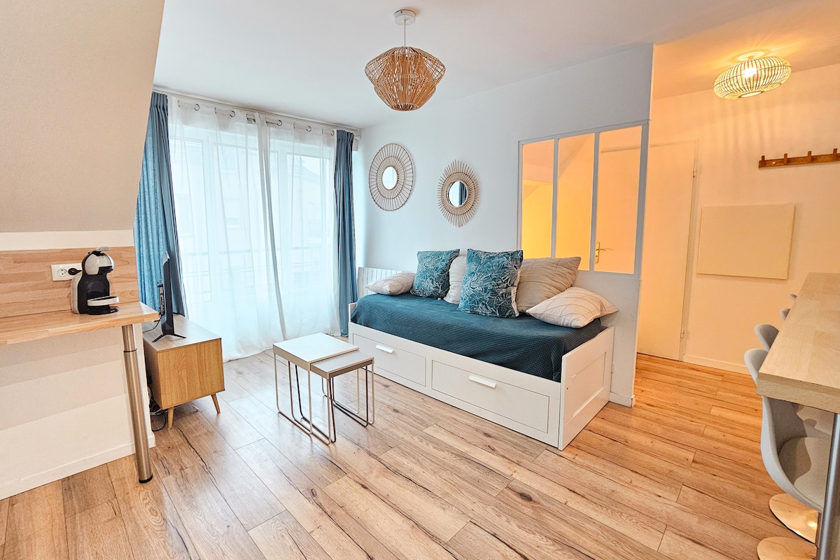 Stúdíó í Meaux, 32m2, fullkomlega staðsett og endurnýjað fyrir 2 eða 4 manns. 5 mín frá lestarstöðinni á fæti, miðborginni og dómkirkjunni 20 mín rúta til Disney og Val d 'Europe verslunarmiðstöðvarinnar (strætóstöð 5 mín ganga, lína 19) 25 mín frá París með lestarlínu P 100 m frá „Over time“ elliheimili Village Nature í 15 mínútna akstursfjarlægð 30 mínútur frá Roissy flugvellinum Museum of the Great War 10 mín akstur Þægindi, veitingastaðir og fyrirtæki í nágrenninu Trefjar þráðlaust net