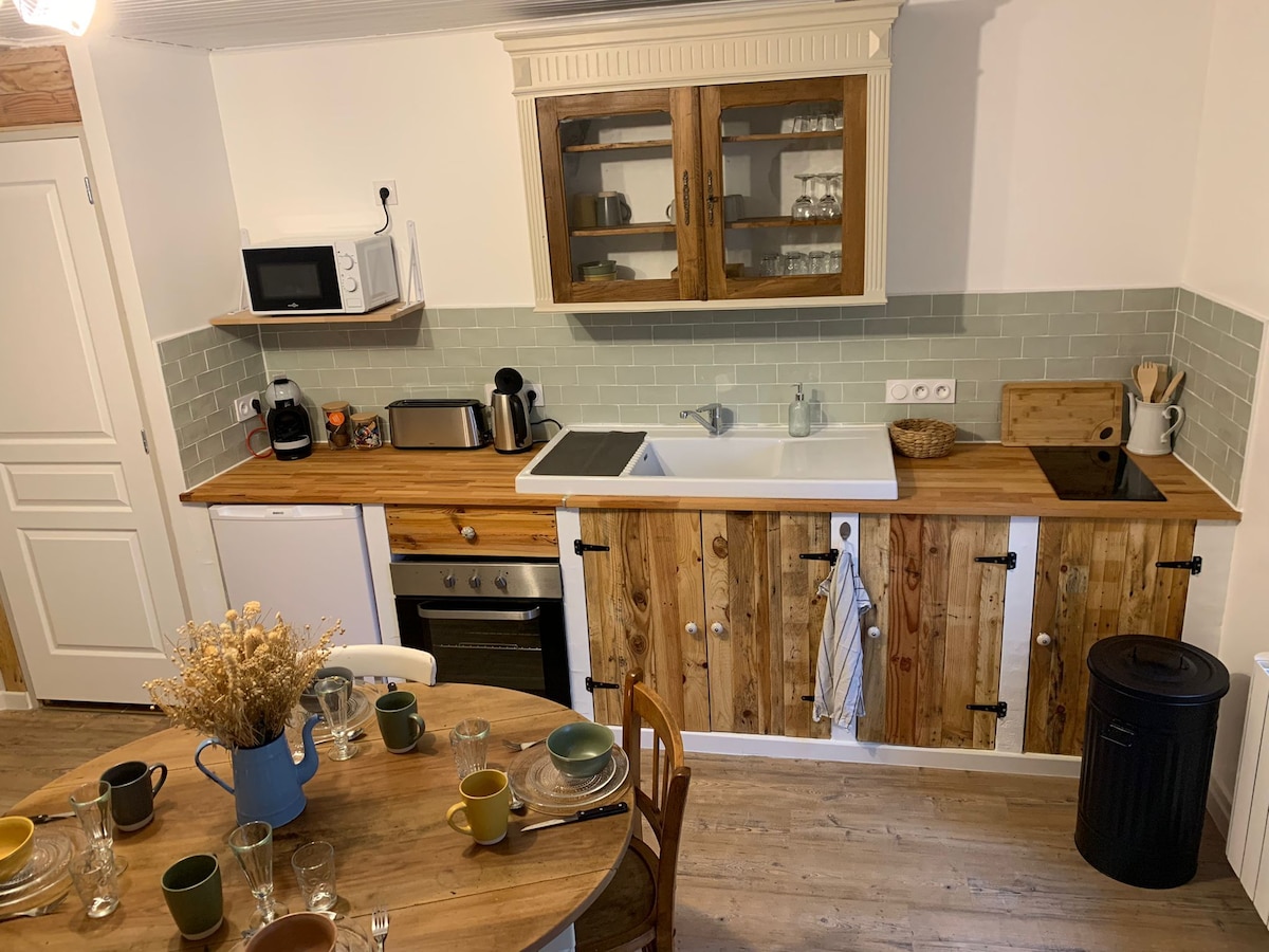 Komdu og kynnstu fallega svæðinu okkar Touraine í hjarta Azay le Rideau, í húsinu okkar, steinsnar frá stórkostlega endurreisnarkastalanum! Þú getur slakað á í fallegum garði með grill til ráðstöfunar eða kælt þig í hvelfda kjallaranum! Inni er björt stofa með setustofu, borðstofu og innréttuðu og vel búnu eldhúsi! Á jarðhæð er sturtuklefi, salerni og eitt svefnherbergi. Hin tvö herbergin eru uppi. 💙