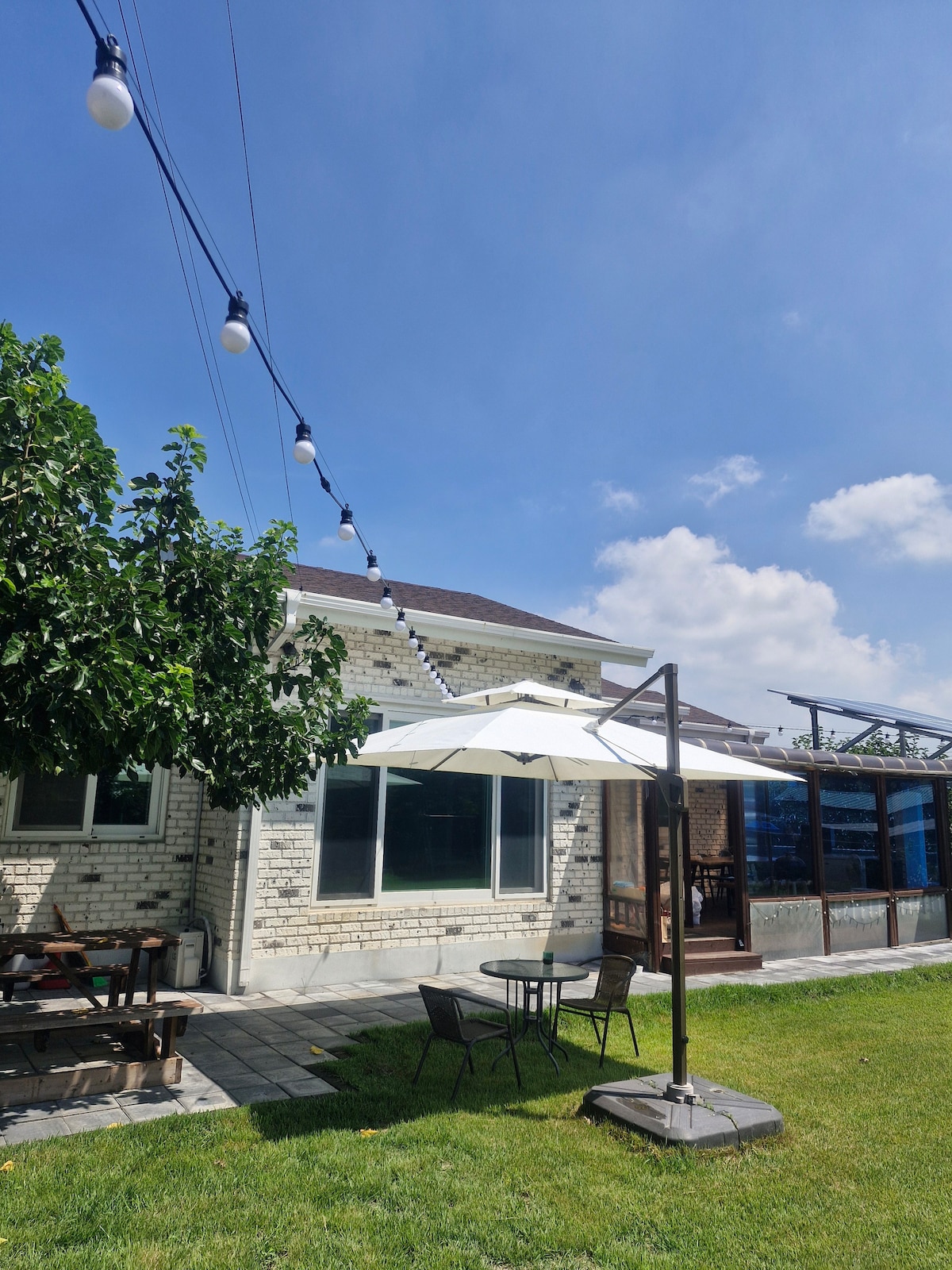 4,96 af 5 í meðaleinkunn, 25 umsagnirThe Flower_{Gyeongju} Emotional Fusion Hanok Pension Útigrill í boði Notkun á opnu peruborði á verönd með rigningu.