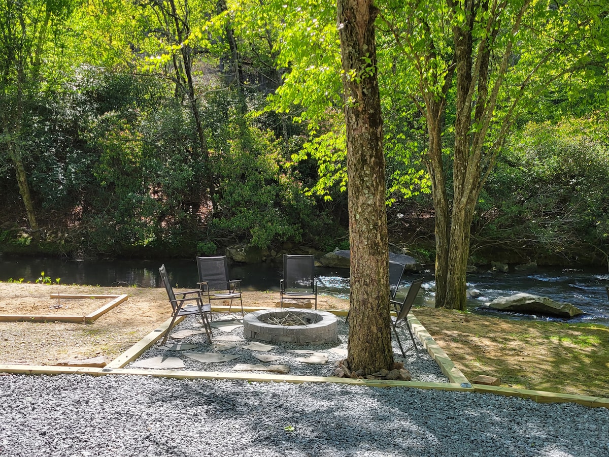 Looking for a true mountain-creek retreat, this is it. Wake up to the sound of rapids, sip your morning coffee beside the creek, and spend your evenings around the firepit under the trees. Our private, fenced riverside property sits directly on beautiful Brasstown Creek, with easy access right from the yard. This unique getaway includes 1 large RV (sleeps 7–8 total) and a large covered outdoor living deck with hot tub, giving you the comfort of home while keeping you connected to the outdoors.