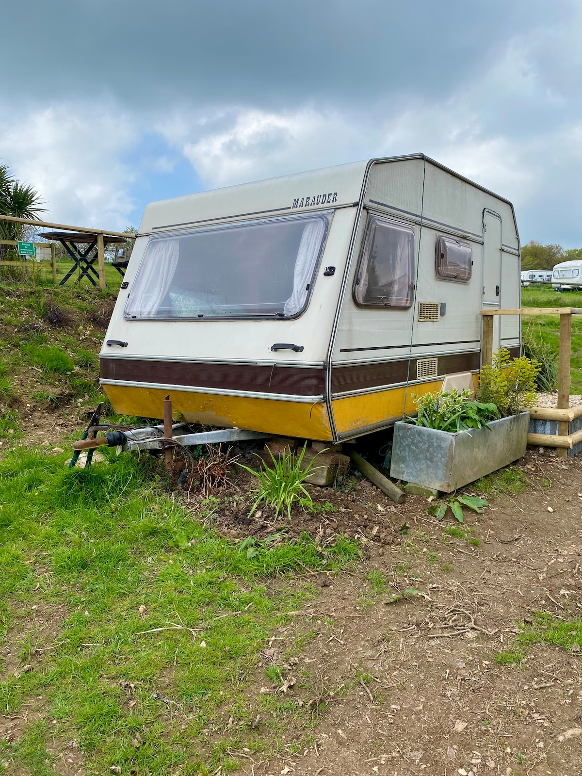 Verð er á nótt á mann. Viðbótargestir verða fyrir viðbótargjaldi. Gistu á vistvænu svæði, notaðu það sem grunn til að skoða þig um eða einfaldlega gista þar sem þú ert og njóttu kyrrðarinnar. Vinsamlegast hafðu í huga að þú þarft að vera umhverfislega viðkvæm/ur fyrir vatnsnotkun þinni og förgun úrgangs með litlum tilkostnaði. Þú getur komið með hunda (kindur á næsta akri) og kveikt eld í eldstæðinu. hjólhýsið er á afskekktum stað frá harða standinum og í blautu veðri er mælt með því.