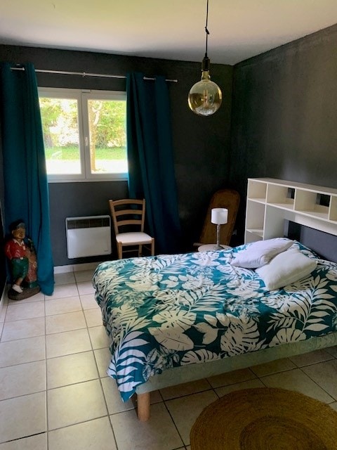 Lítið 45 m2 hús með sjálfstæðu flötu þaki, staðsett á lóðinni okkar. Þú finnur fallega stofu með eldhúsaðstöðu, borðstofu og stofu. Aðskilið svefnherbergi (rúm 140) ásamt stóru baðherbergi með sturtu sem hægt er að ganga frá. Stór 20 m2 verönd með útsýni yfir sveitina og hæðirnar Frá gönguferðum, 3' frá tjörn. 5 mín. frá enedis-þjálfunarmiðstöðinni og 30 mín. frá Lyon Ekki aðgengilegt fyrir fólk með fötlun