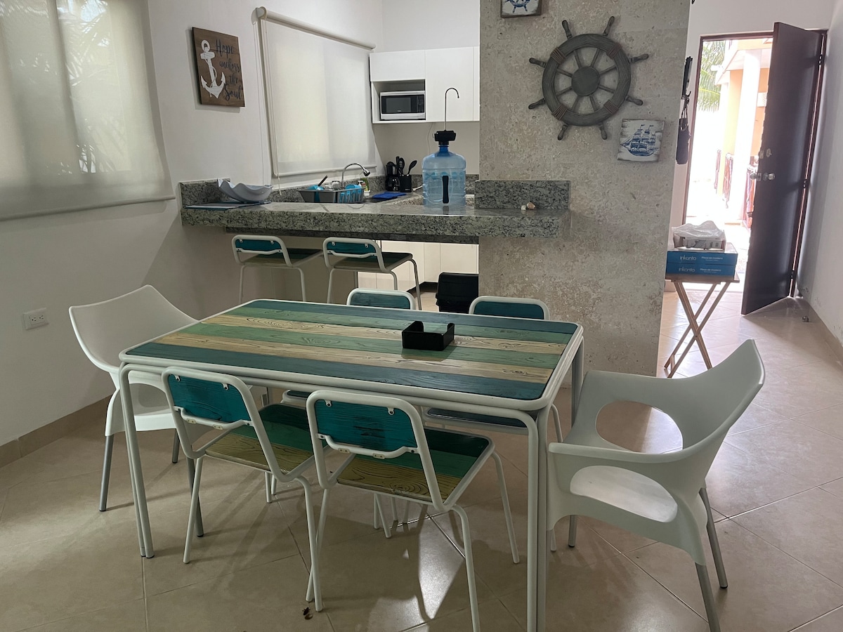 Láttu töfra Yucatecan-strandarinnar ná yfir þig í nýju fullbúnu íbúðinni okkar. Sökktu þér í skynjunarhaf og uppgötvaðu kyrrðina sem þú leitar að. Njóttu ógleymanlegra sólsetra á þakinu okkar og einstakra stunda með ástvinum þínum.
