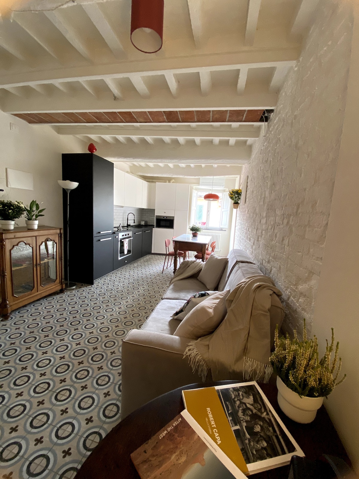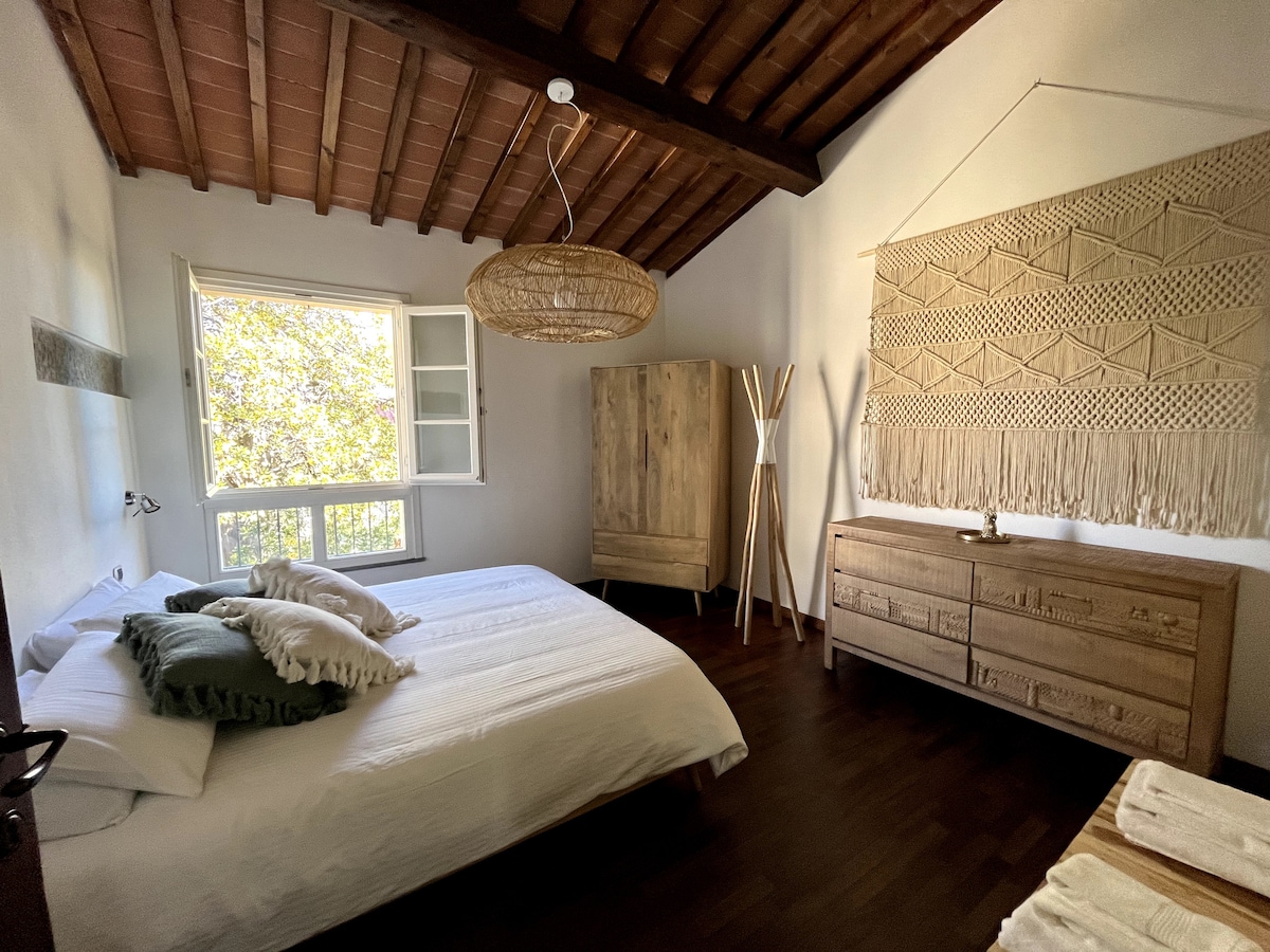 Gamalt turnhús í hjarta Písa. Fullbúið eldhús úr ryðfríu stáli með espressóvél og katli. Innréttingarnar blanda saman viðarbjálkum, stáli og gleri með hengirúmi, hönnunarlömpum, plötuspilara og umfangsmiklu bókasafni með listaverkum og myndskreytingum. Svefnherbergið er aðgengilegt í gegnum innri stiga en íbúðin er staðsett á háaloftinu (3. hæð) í sögulegri byggingu: stiginn er dálítið brattur og því miður getur verið að hann sé ekki þægilegur fyrir alla.