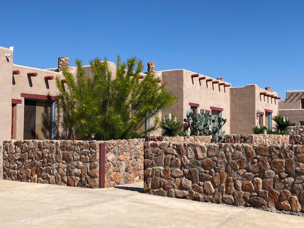 Views, off street parking, quiet stay at the edge of the village overlooking the open desert and Paquime. New York 1-ton mini splits. Ceiling fans in each private room with patios. Beautiful Pueblo Indian style architecture, with 12 inch thick walls, wood and viga ceilings, rustic pine furniture, handmade tile bathrooms, stone look tile floors, queen beds, big windows, wifi and smart tv's with netflix, rock walls, security cameras, owners on site.