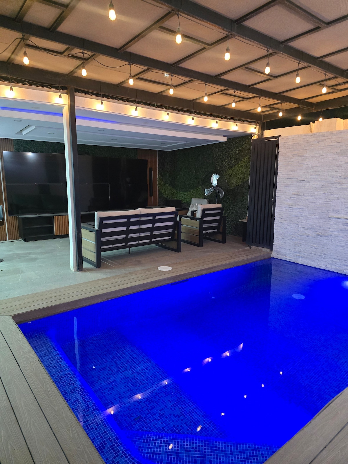 · 🏠 4 habitaciones amplias: Ideales para grupos grandes. La principal cuenta con tina jacuzzi para una experiencia de spa privada. · 🎱 Cuarto de juegos: Incluye mesa de billar para horas de diversión. · 🎬 Sala tipo cine: Vive la experiencia del séptimo arte desde el sofá. · 🍳 Cocina amplia: Totalmente equipada, perfecta para cocineros apasionados. · 🏊♀️ Alberca: Refrescante y privada, con áreas para descansar. · 🚗 Cochera amplia: Espacio cubierto para 3 vehículos. ¡Reserva ya!