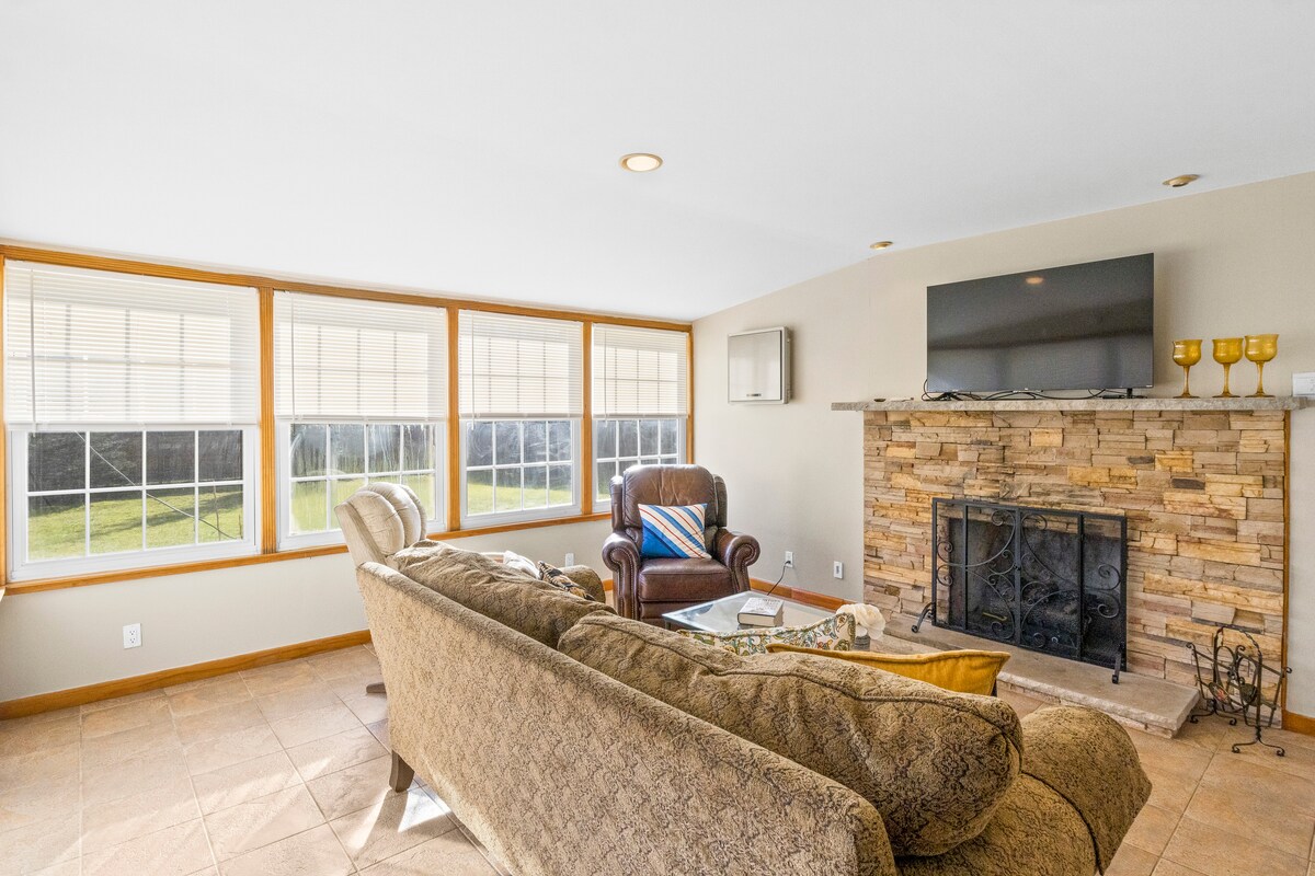 Skoðaðu allt sem Rochester hefur upp á að bjóða, allt frá þægindum endurbyggða vagnhússins okkar! Við erum staðsett rétt fyrir utan þorpið Churchville, minna en 20 mínútur í miðbæinn. Húsið er með tveimur hæðum í stofu, fullbúnu eldhúsi, bílskúr, þvottavél og þurrkara og útsýni yfir sveitina. Bærinn okkar styður við endalausan skóg með gönguleiðum og landamærum við læk.
