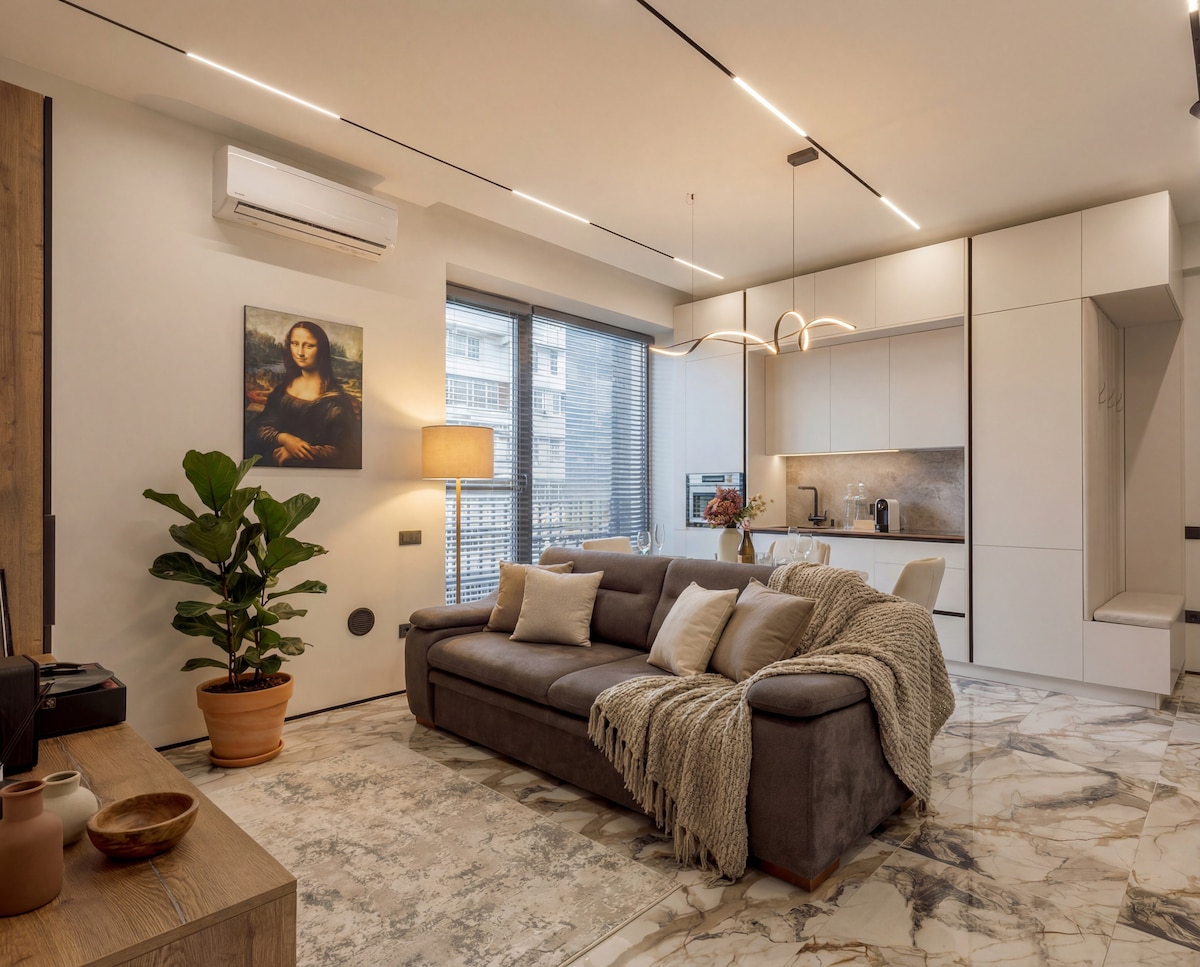 Þessi íbúð er tilvalin fyrir dvöl þína í Chișinău og býður upp á rými sem er bæði þægilegt og notalegt. Hvert herbergi er hannað með ferskri og nútímalegri hönnun til að láta þér líða eins og heima hjá þér, hvort sem þú ert hér í helgarferð, í fjölskylduferð eða í viðskiptaerindum. Uppsetningin er sveigjanleg svo að auðvelt er að slaka á eða ganga frá hlutunum og hún er steinsnar frá því besta sem borgin hefur upp á að bjóða. Hvort sem þú slakar á eða skoðar færðu allt sem þú þarft fyrir áreynslulausa dvöl.