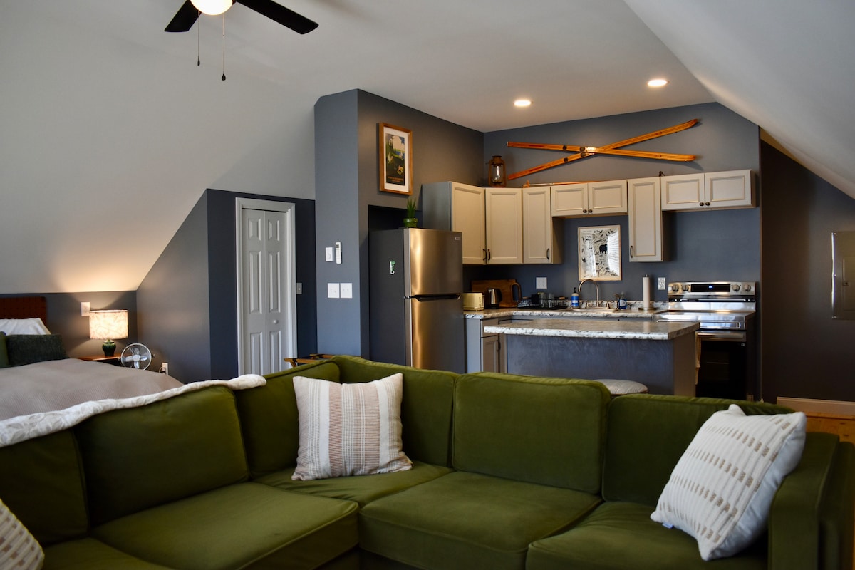 The Barn at Grousewood, staðsett 35 mínútur til Burlington. Ef þú ert að leita að notalegu, afslappandi komast í burtu bjóðum við þig velkomin/n í umbreyttu hlöðuna okkar. Snúðu vinyl, lestu eða spilaðu leiki. Miðsvæðis fyrir dagsferðir til brugghúsa, gönguferða og veitingastaða. Við erum með gönguleiðir fyrir snjóþrúgur og að skoða skóginn okkar sem er fullur af dýralífi. Dádýr, björn, bobcat, uglur, porcupine, villtur kalkúnn, grouse og fleira. Njóttu elds fyrir utan eða slakaðu á fyrir framan eldstæðið. WiFi fyrir starfsfólk á ferðalagi og hundavænt.