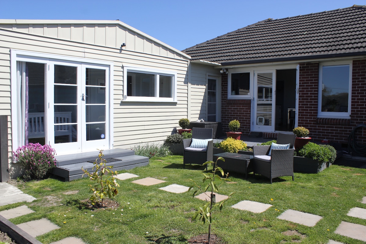 - Contactless check-in - Free continental breakfast - Unlimited fast Wifi - Smart TV with Netflix, Freeview, TVNZ+, ThreeNow and Prime Video. - Heatpump/aircon - Offstreet parking - 6 minutes to airport Warm, sunny and private with ensuite bathroom and french doors in a garden setting. Just 6 minutes from Christchurch airport and 10 minutes from the city centre. Relax and enjoy a generous continental breakfast, unlimited fibre optic Wifi and smart TV.