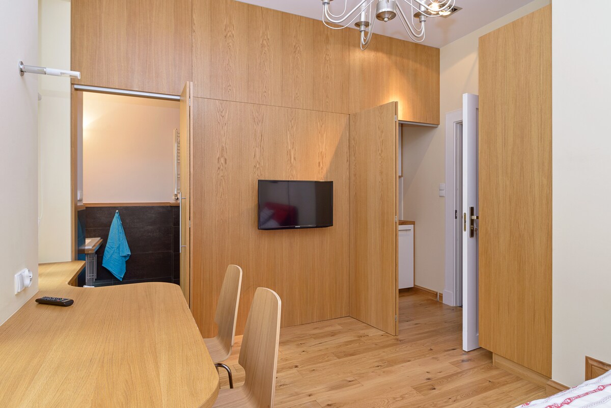 Falleg stúdíóíbúð í miðborginni. 3 mínútur að gömlu torginu, þú mátt ekki missa af því :) Fullbúið, ókeypis þráðlaust net, eldhúskrókur, ísskápur, kaffivél, brauðrist, örbylgjuofn, keramik helluborð, þvottavél, rúmgóður fataskápur, straujárn, handklæði . Þú ert velkomin(n) Ég gef út reikninga