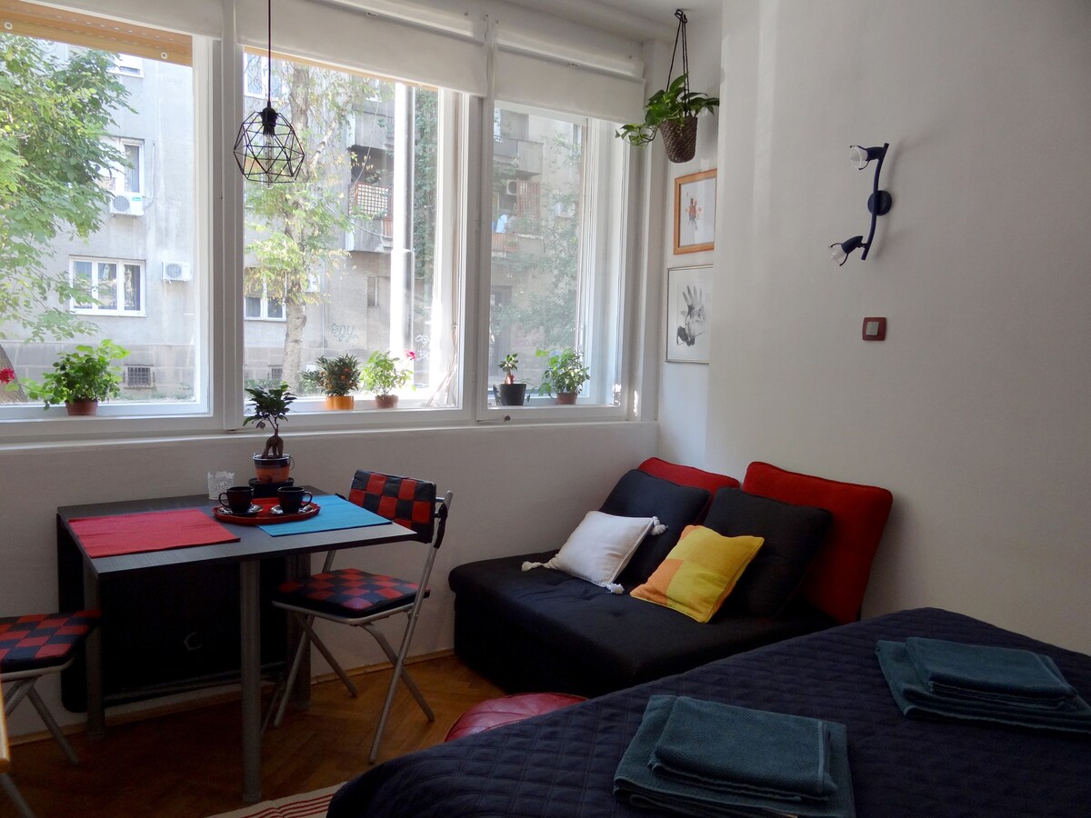 Tranquil 1-BR Haven by Slavija Square - Ideal for Digital Nomads & Explorers! Discover our serene 1-bedroom apartment, a hidden gem in a courtyard near vibrant Slavija Square. Perfect for digital nomads and explorers, enjoy seamless travel with nearby airport & train station bus stops. Exchange office, coffee shop, McDonald's, and bakery are at hand. All attractions are a stroll away, yet you're in a transport hub. Make your Belgrade stay exceptional - book now!