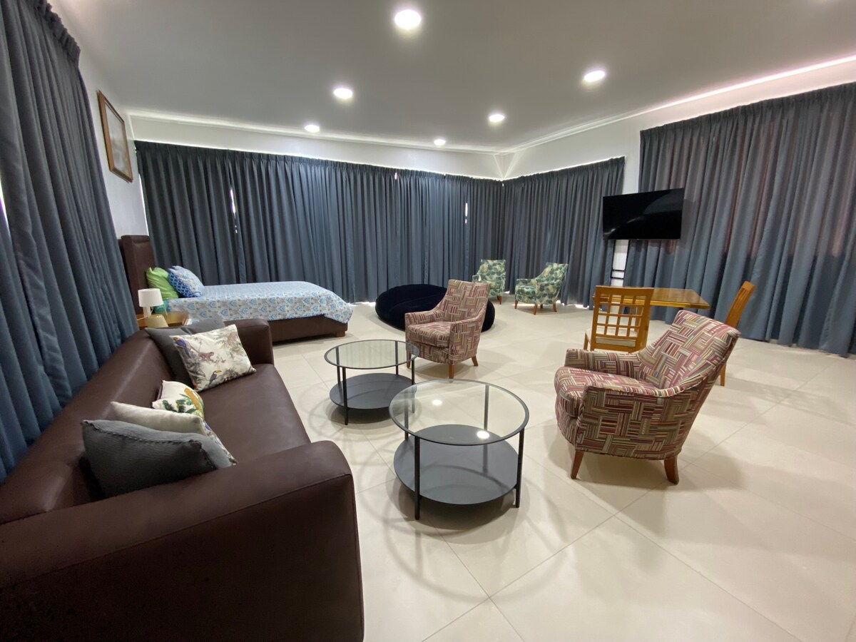 This is a beautiful exclusive suite on the 12th level of the tower with a panoramic view. The concept is modern and luxury . Led iluminated ceilings. Air conditioning in both the living room and bedroom offer a pleasant climate. A very comfortable bed for a good night sleep . 50 -Inch TVwith NETFLIX,WiFi,cable and other amenities are included. Located in one of the most prestigious and secure areas .Whether it’s a business trip or a relaxation vacation, this will be the perfect getaway.