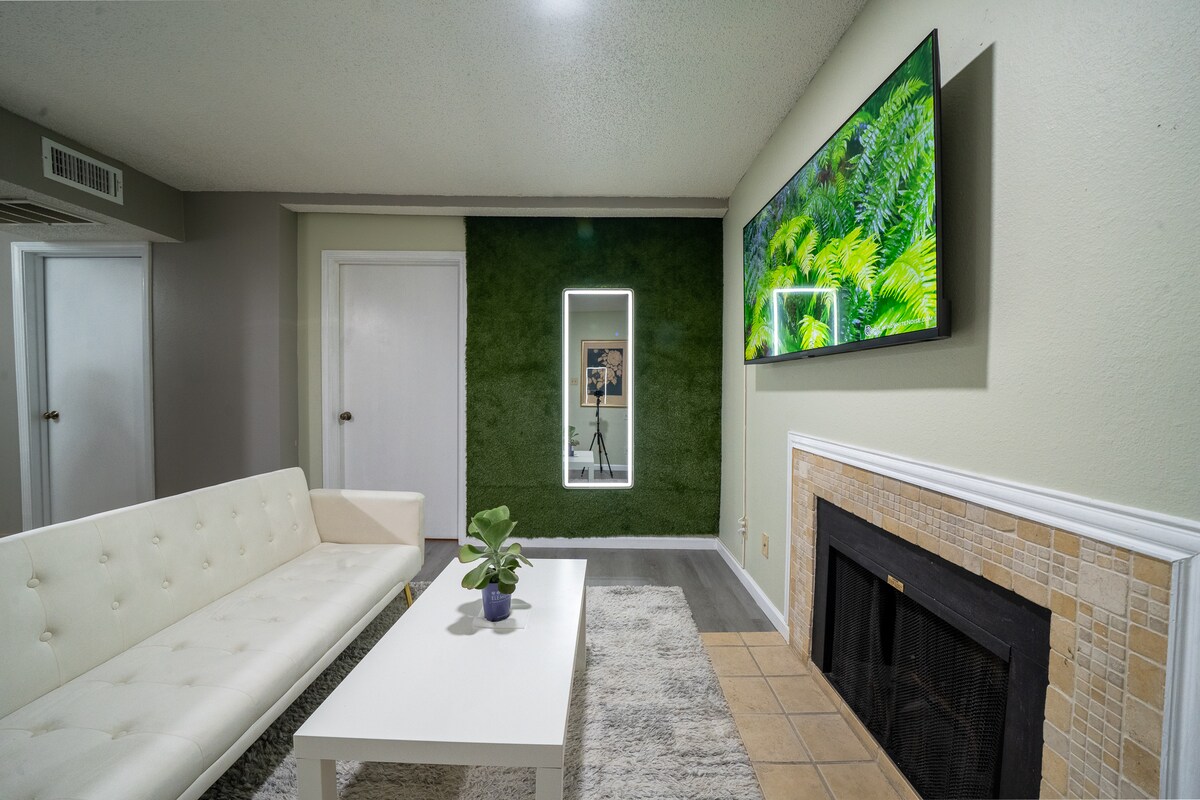 Victory Park er í minna en 5 km fjarlægð frá miðborg Dallas og liggur á milli hönnunarhverfisins og Uptown. Íbúðin okkar er hönnuð til að hjálpa þér að hugsa sem best. Þú verður með björt og víðáttumikil rými og ókeypis ÞRÁÐLAUST NET. Þú verður með allt sem þú þarft til að vera afkastamesta. Slakaðu á og endurnærðu þig þegar dagurinn er búinn til, í rými sem er búið til til að slaka á á allan hátt. Aðstoð við svítu allan sólarhringinn Ef þú hefur einhverjar spurningar eða áhyggjur meðan á dvöl þinni stendur.