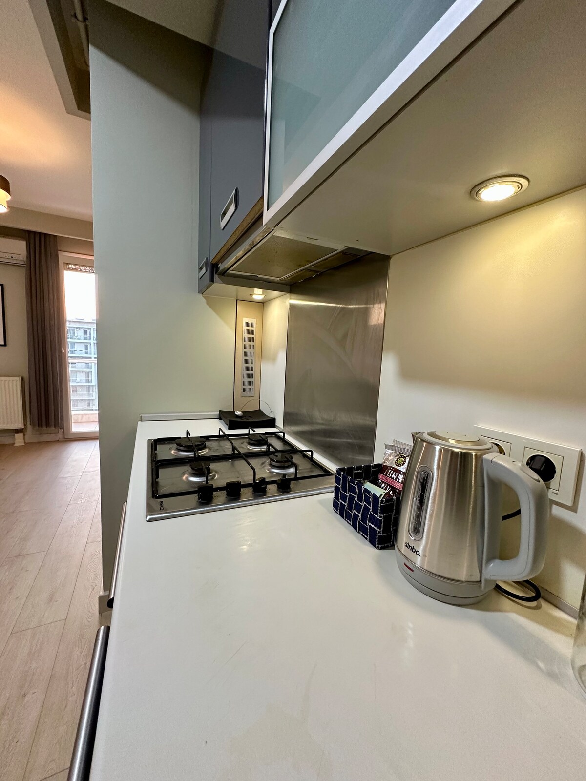 Þessi 1+1 lúxusíbúð er staðsett á lóð MyWay Wins Blue og býður upp á þægindi og forréttindi. Það bíður þín með mörgum félagslegum aðstöðu eins og gerviströnd, inni-/útisundlaug, líkamsrækt, sánu, hammam, kvikmyndahúsi, körfuboltavelli, öryggisgæslu allan sólarhringinn og bílastæði. Íbúðin okkar er fullbúin húsgögnum og búin 70 tommu risaskjásjónvarpi, þægilegu rúmi, stórum svölum, innbyggðu eldhúsi og háhraðaneti. Friðsæl upplifun bíður í þægindum hátíðarinnar.