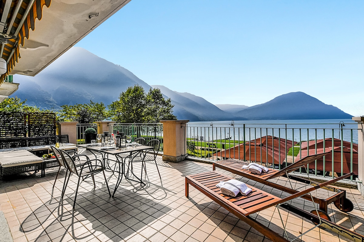 Óhindruð útsýni yfir vatnið frá fallega enduruppgerðri íbúð frá 19. öld, fullkomlega staðsett við göngustíginn við vatnið í Lenno, Tremezzina. Aðeins 200 metra frá ferjustöðinnið beinar tengingar við Bellagio, Varenna, Villa Carlotta og miðaldaborgina Como. Auðveld gönguferð til Villa Balbianello og Villa Balbiano. Slakaðu á með vinum yfir forrétti í glæsilegri stofu með upprunalegu stucco-lofti frá þriðja áratug síðustu aldar á meðan gluggatjöldin sveiflast í golunni frá vatninu. Hreint Como-líf.