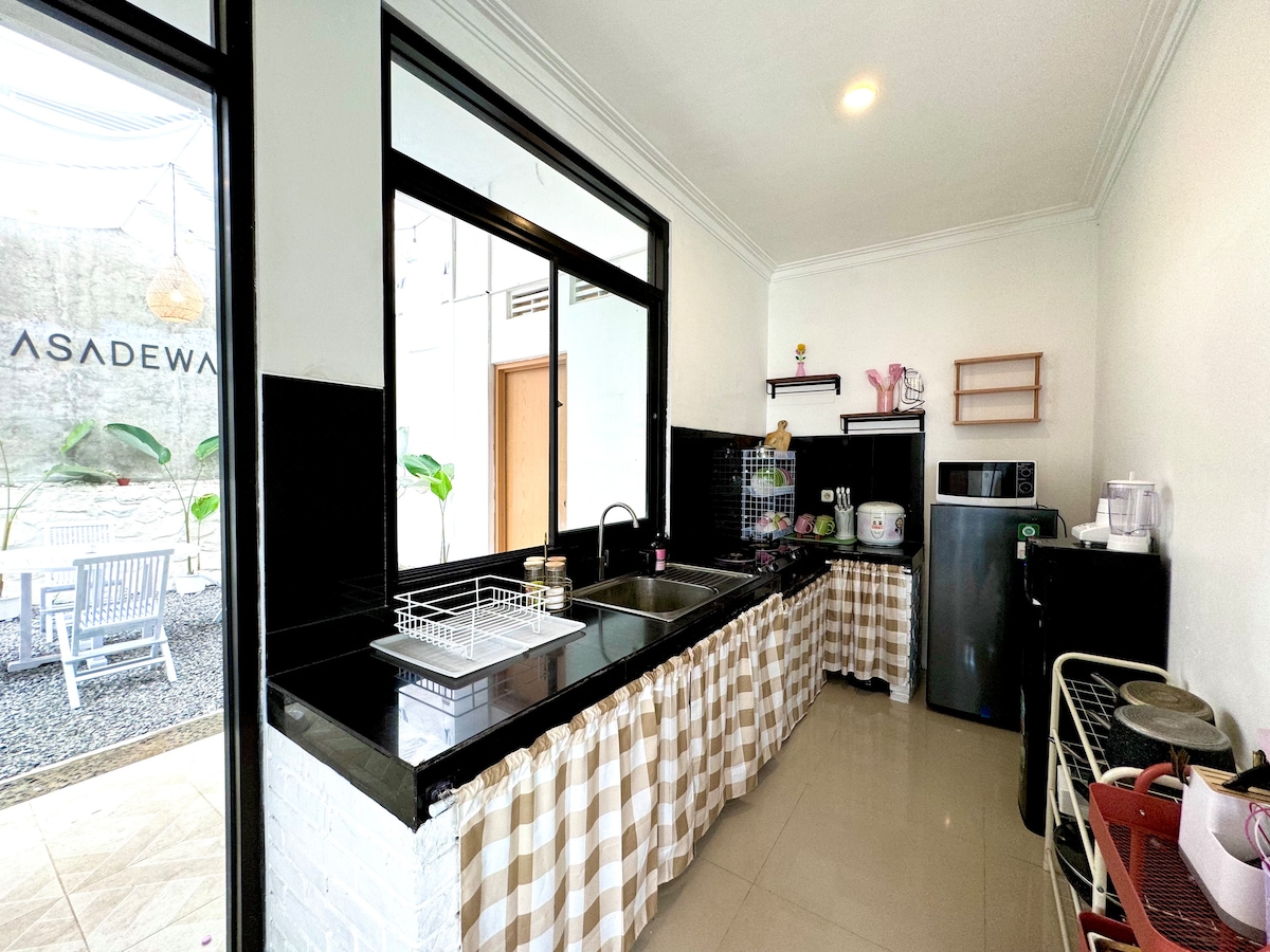 Einföld og þægileg japönsk eign á Airbnb í hjarta Cimahi-borgar. 2 BR + 2 Bath, Wifi, Netflix, Game Board, Baby Bath, High Chair, front yard, spacious parking area, open space living and dining area, complete kitchenette, sparkling water, peaceful neighborhood. Þægilega staðsett, þú ert aðeins í nokkurra mínútna fjarlægð frá Pasteur Toll Gate, Maranatha University, POLBAN University, Paris Van Java Mall, 23 Paskal Shopping Center, Lembang Park Zoo, Dusun Bambu og Tangkuban Perahu.
