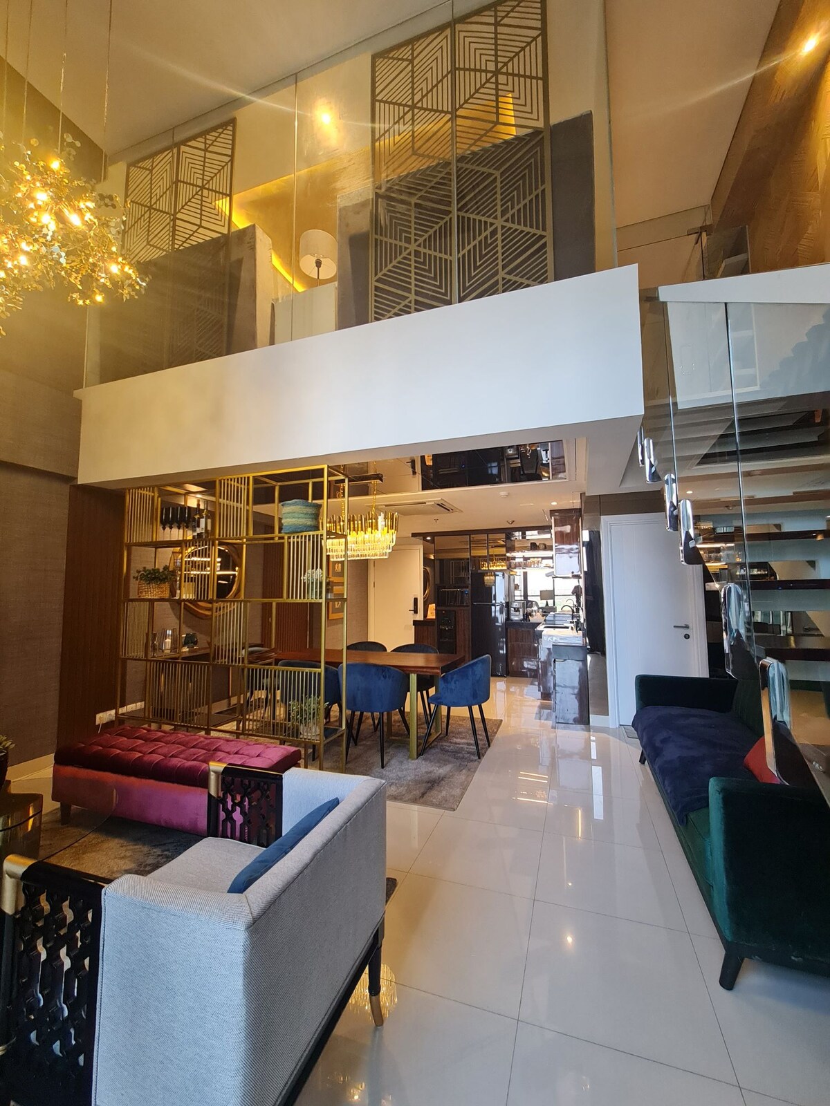 Upplifðu lúxusgistingu í einingu okkar í VieLoft Ciputra World Surabaya. Þessi eign er úthugsuð og gerir dvöl þína í Surabaya eftirminnilega. Upplýsingar: 2 Queen Size Bed Svefnsófi 2 fullbúið baðherbergi 1 borðstofa Þessi eining er fullkomin ef þú kemur með 8 til 10 manna hóp þar sem hún er einnig tengd við hina SkyLoft-eininguna okkar sem hægt er að bóka sérstaklega. Einnig gott ef þú vilt gera myndir Einingin okkar er í aðeins 25 mínútna fjarlægð frá Juanda-alþjóðaflugvellinum