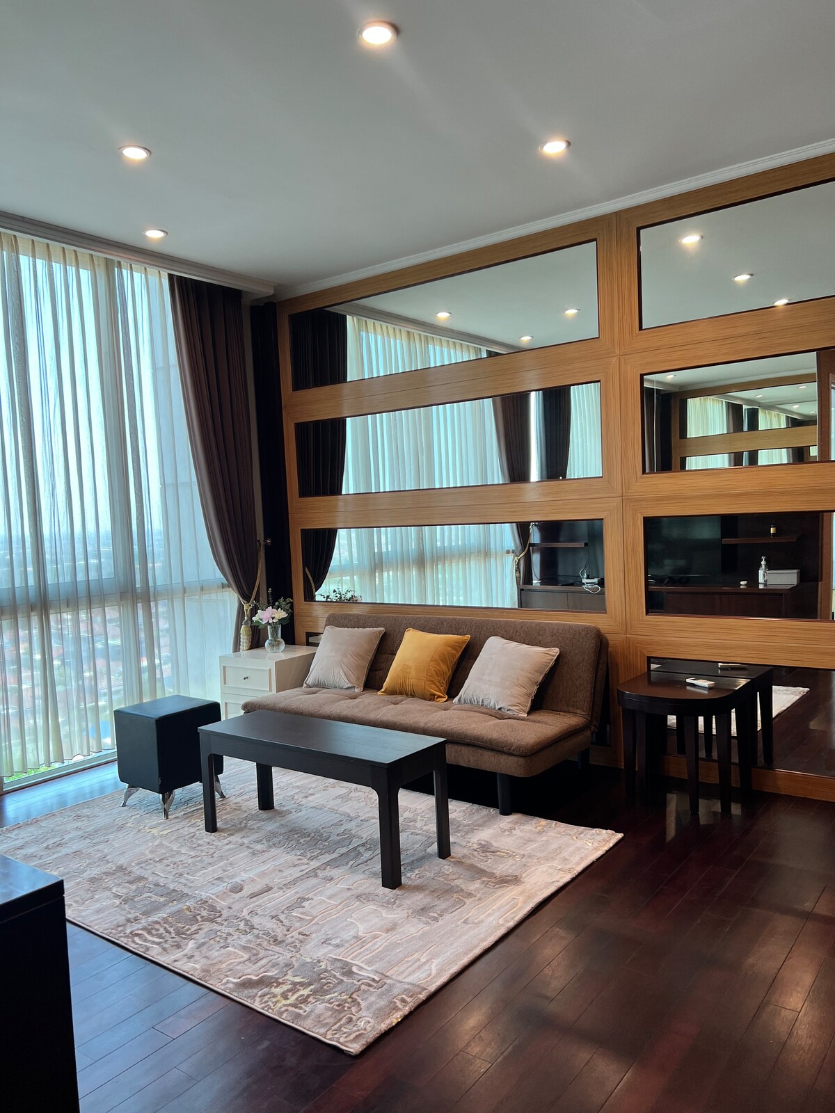 3 svefnherbergi og 2 baðherbergi Nýuppgerð heimilisleg og björt íbúð inni í Ciputra World Mall Superblock í vesturhluta Surabaya. Þetta er ekki dæmigerð Airbnb íbúð þar sem hún er með gæðastaðli hótelsins. Íbúðin er u.þ.b. 125 fm eða 1.345 fm og miklu stærri en að meðaltali 3 svefnherbergi íbúð í Surabaya; þannig færðu það sem þú borgar. Mikilvægast er að umsögnin og einkunn þessarar íbúðar ætti að tala sínu máli.