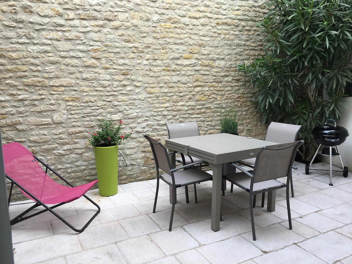 VERIÐ VELKOMIN Á EIGNINA OG UNDUR!!! Nýtt loftkælt 50 m2 mjög þægilegt staðsett í hjarta Château d 'Oléron við rætur ramparts. Helst staðsett: - minna en 10 mín ganga að markaði og verslunum - minna en 10 mín ganga að ströndum - 100 metra frá matvörubúð - 15 mínútna göngufjarlægð frá höfninni og ómissandi ostruskálum hennar hefur verið breytt í vinnustofur listamanna - 15 mín ganga að Citadelle Alienor d 'Aquitaine - við rætur hjólastíga.