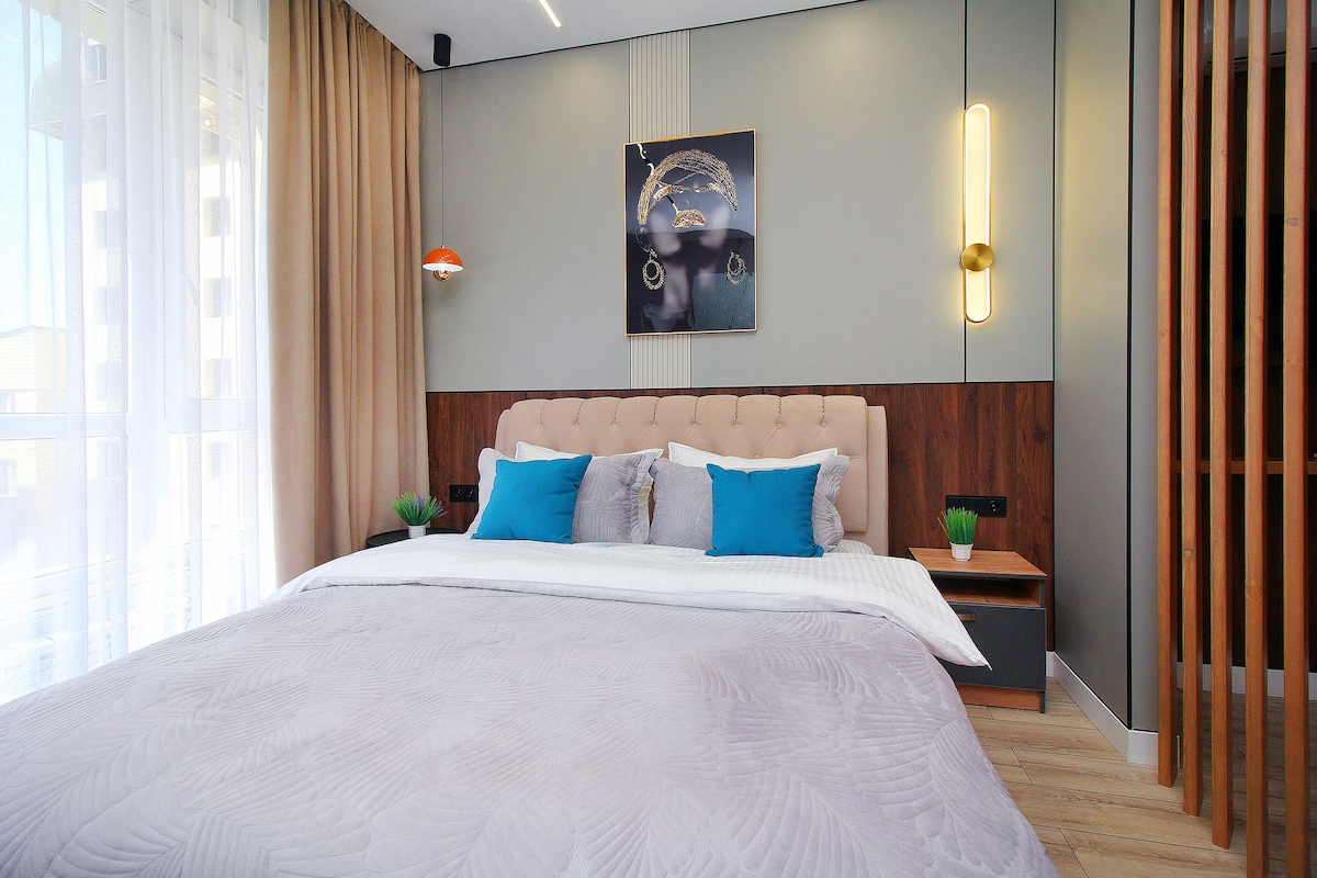 Verið velkomin til Meridian þar sem hönnunin hentar vel í hjarta borgarinnar. Þessi glæsilega íbúð er staðsett í nútímalegu íbúðarhúsnæði steinsnar frá stærstu verslunarmiðstöð borgarinnar „Mega Park“, líflegu Arbat Street og öllu sem þú þarft — kaffihúsum, veitingastöðum, matvöruverslunum og fleiru. Njóttu úthugsaðs rýmis með notalegu andrúmslofti, nútímalegu yfirbragði og öllum nauðsynjum fyrir þægilega dvöl. Fullkomið fyrir ferðamenn í frístundum og viðskiptum.